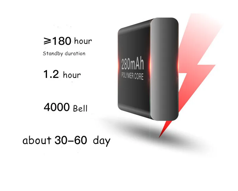 · Зарядное устройство: 5V 250 мА/ч, около 1,5 часов до полной зарядки, поддерживает 2000 раз Рог кольцо;