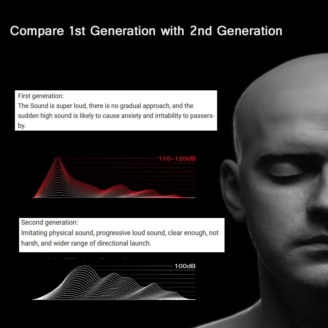 2. Звуковая волна была улучшена: по сравнению со старым 120dB 1-го поколения, этот новый 2-го поколения звук классический и мягкий, не повреждая уши.