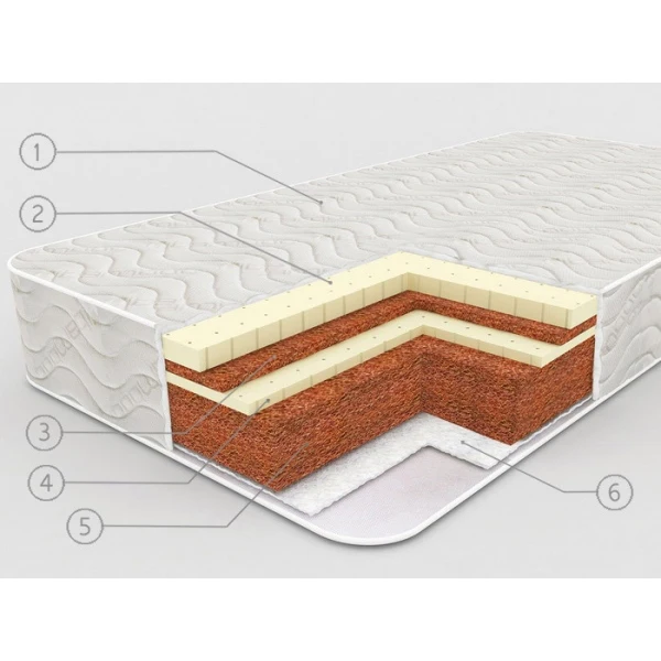 Двухсторонний беспружинный комбинированный матрас премиум класса, одна сторона которого жесткая за счет плиты из многослойной кокосовой койры, а вторая - упругая, благодаря латексной плите.