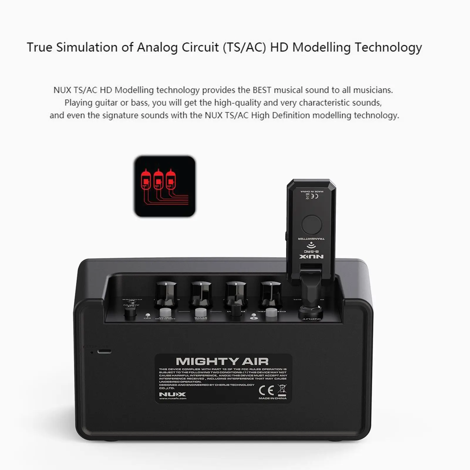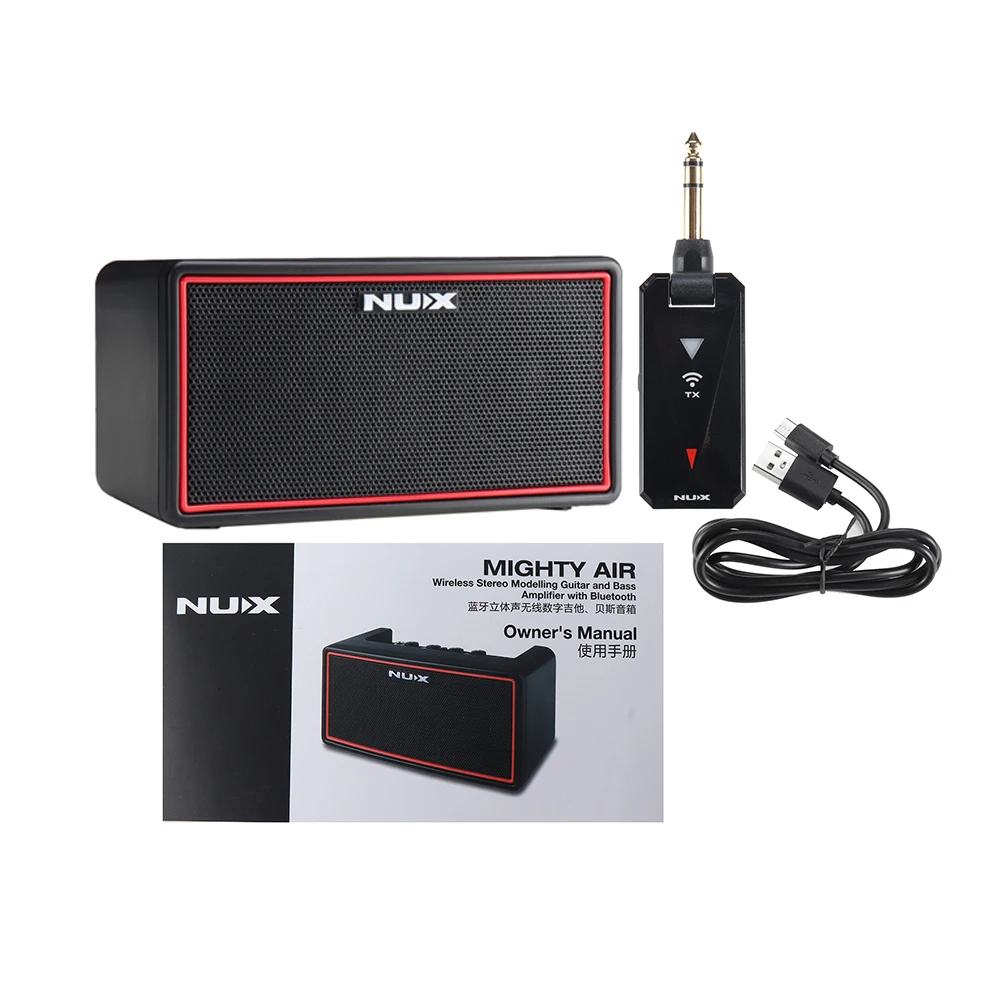 Беспроводная универсальность Quick-Play: Mighty Air Поставляется с беспроводным передатчиком NUX 2,4G и устанавливает новый стандарт для тренировочных усилителей с его полной беспроводной универсальностью. Входящий в Комплект передатчик и встроенный приемник беспроводной системы могут хорошо работать с любой гитарой/басами, активными пикапами или пассивными пикапами.