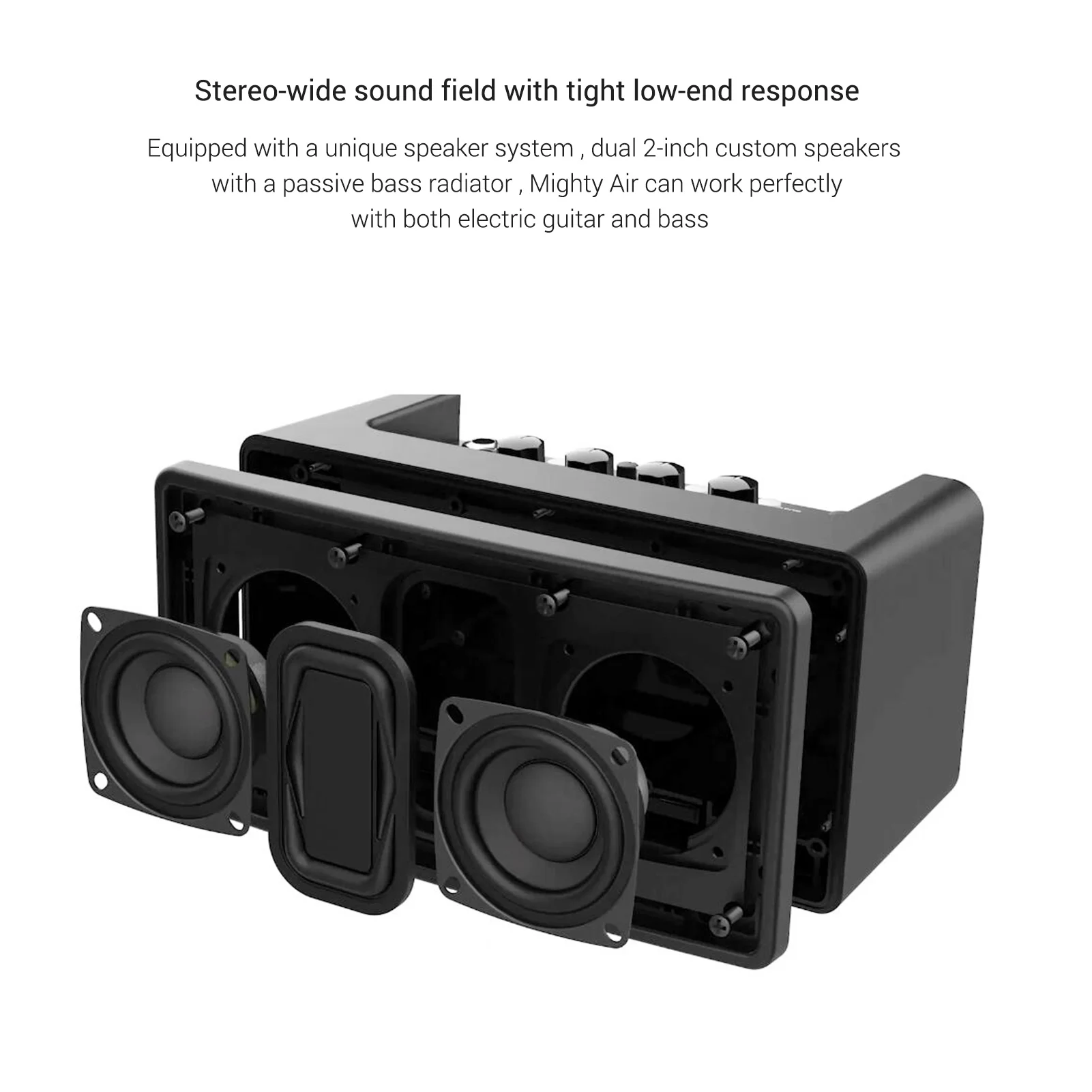 Стерео-широкое звуковое поле с плотными с низким уровнем конца ответ: оснащен уникальная акустическая система, 2-портный dual дюймов Изготовленный На Заказ Колонки с пассивным источник баса, могучий воздух может отлично работать как с электрогитарой, так и с басами.