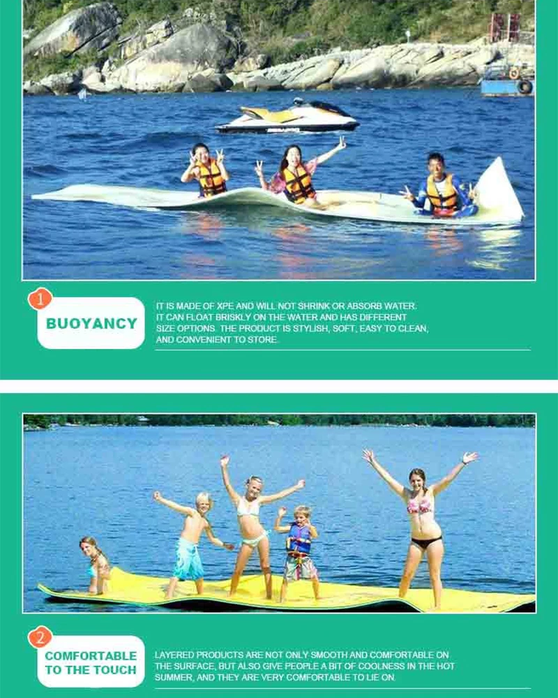 2. При использовании продукт должен быть полностью разложен на поверхности воды. Когда человек находится на «плавающий» ковер, убедитесь, что «плавающий» ковер равномерно напряжен, прежде чем он сможет плавать на поверхности воды.