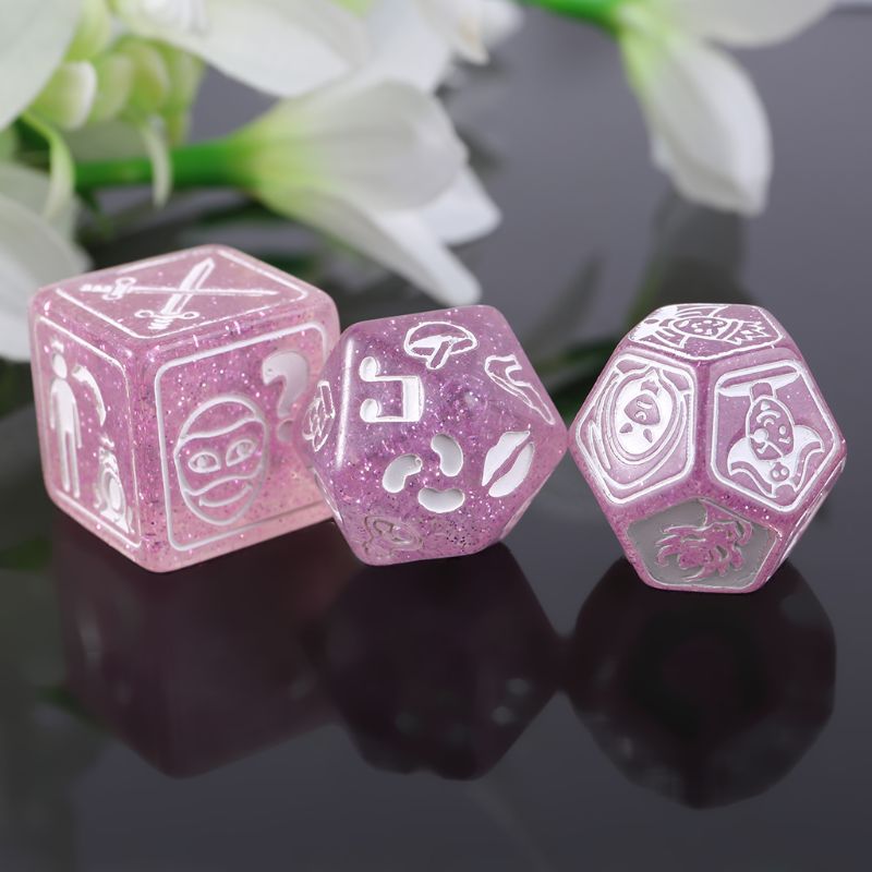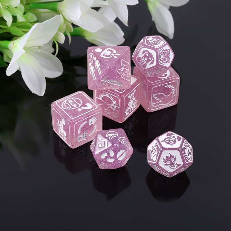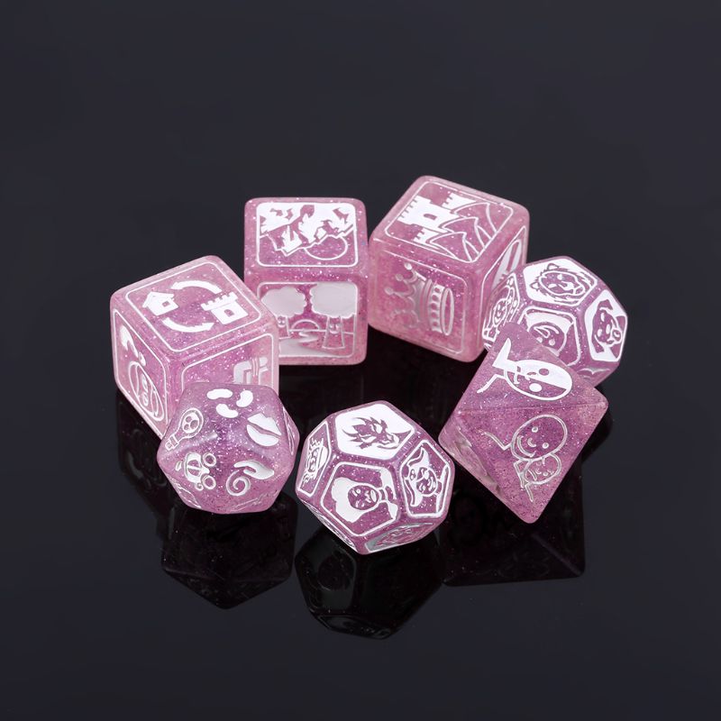 Эти семь огромных многогранных костей иллюстрируют классические фантазийные концепции и мерцают на солнце.
