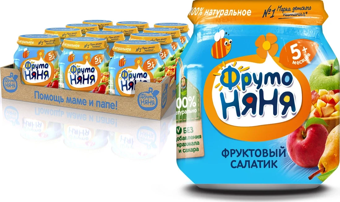 Пюре ФрутоНяня яблоко, груша, персик - фруктовый салатик с 5 мес 100г 12 шт
