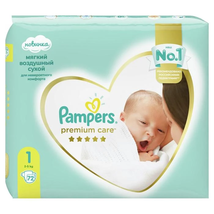 Подгузники Pampers Premium Care, размер 1, 72 шт.