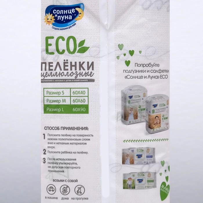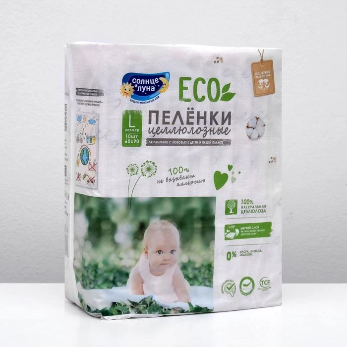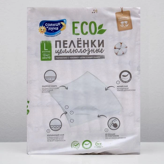 Пелёнки "Солнце и луна" одноразовые детские впитывающие 60х90 см, 10 шт