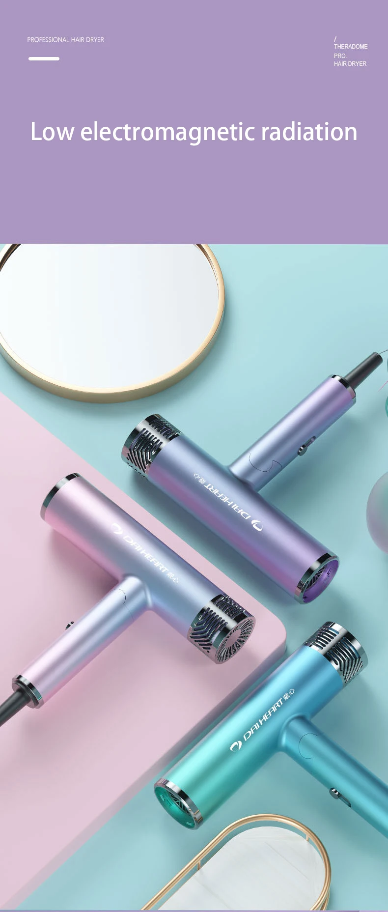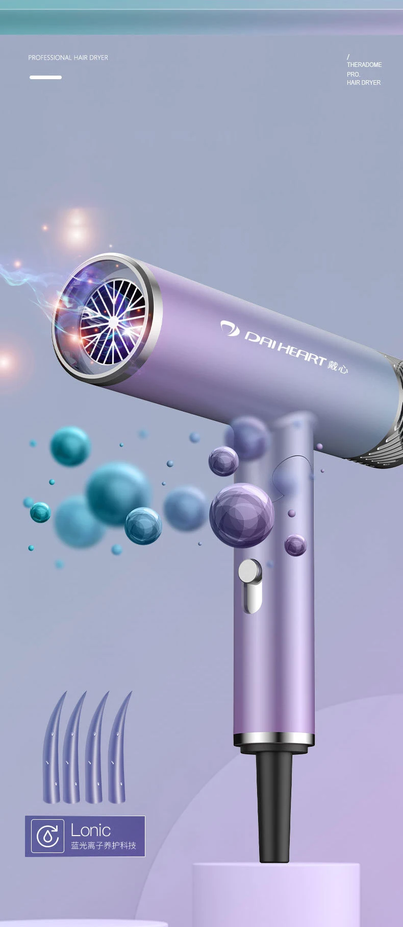 Function: high-power silent, moisturizing, negative ion