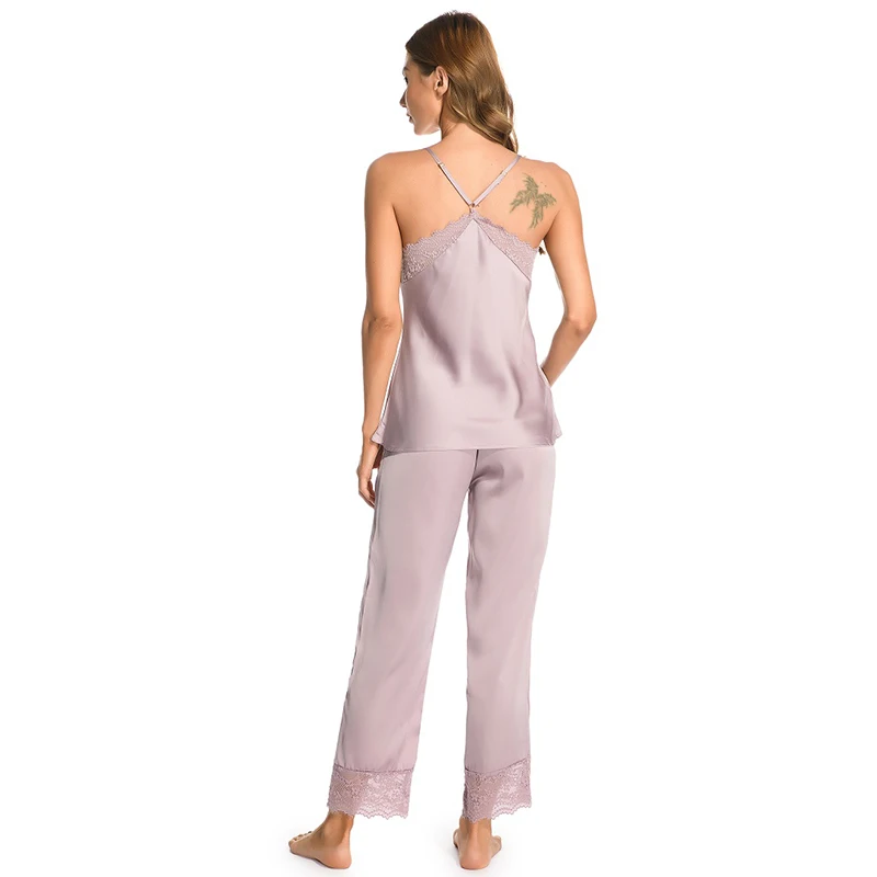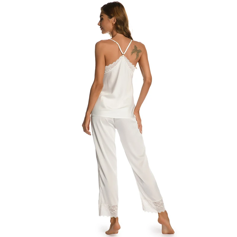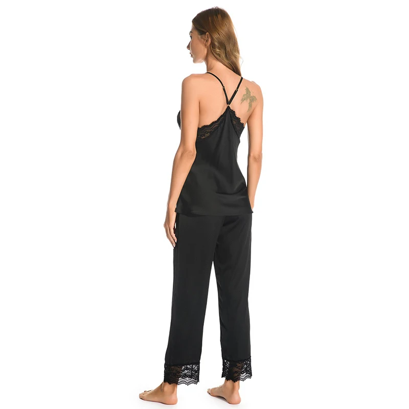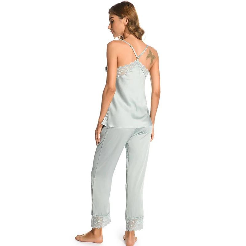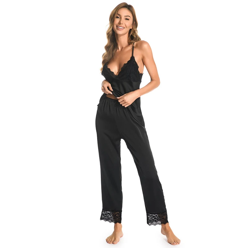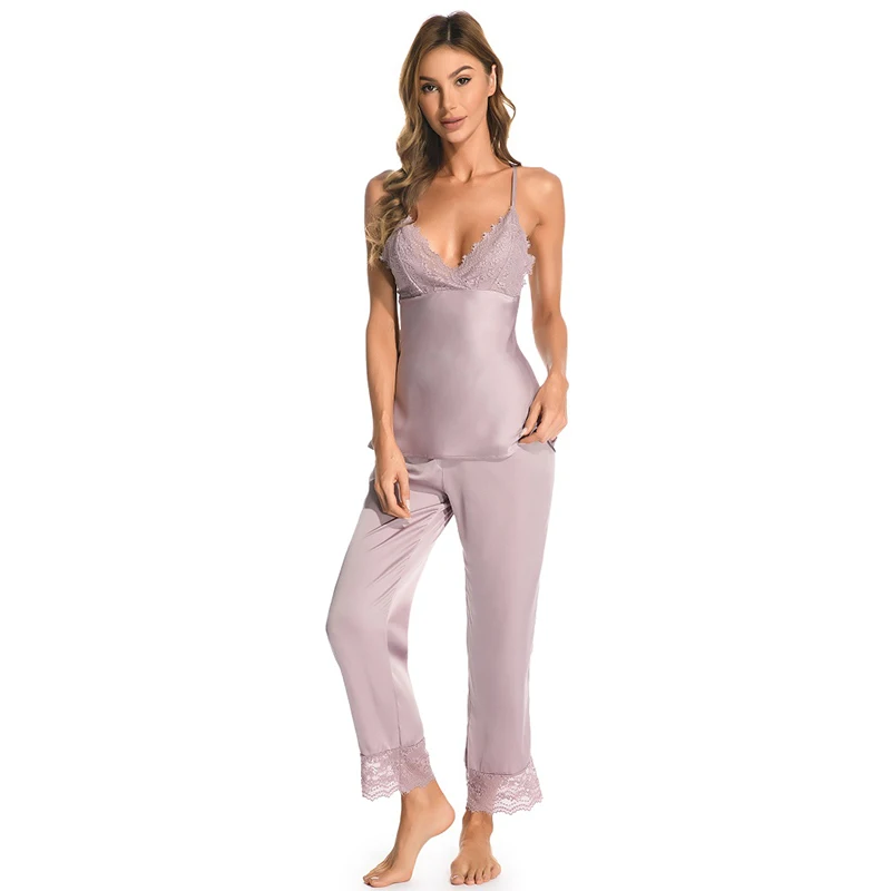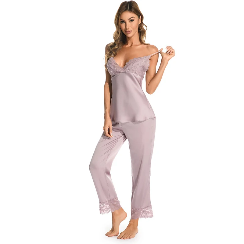 Новинка, аристократические сексуальные женские пижамы, кружевные, имитация шелка, женские укороченные брюки, подтяжки, женское белье, сексуальная ночная сорочка, Женский комплект из 2 предметов