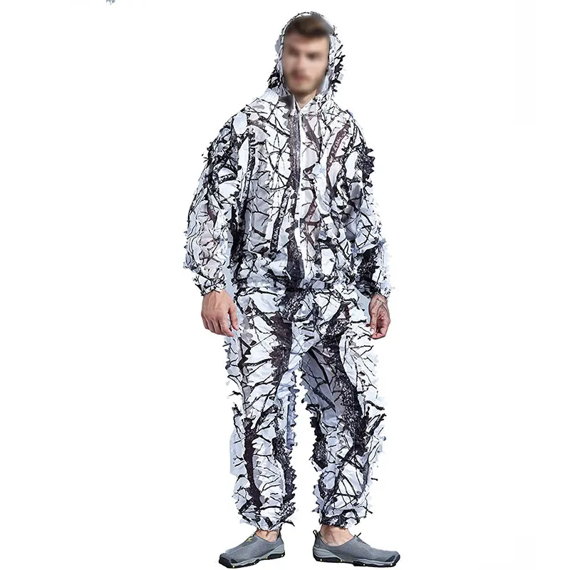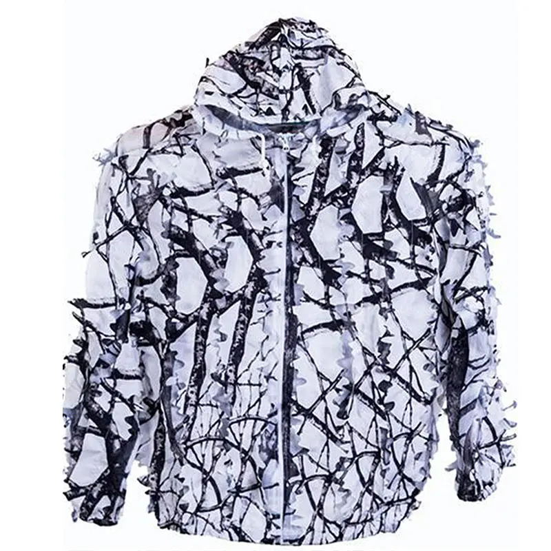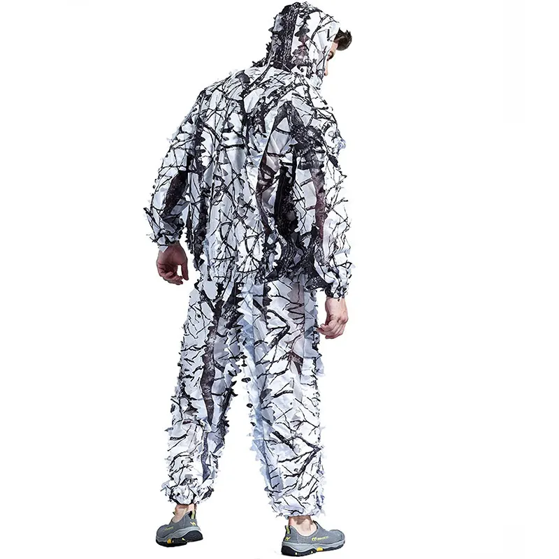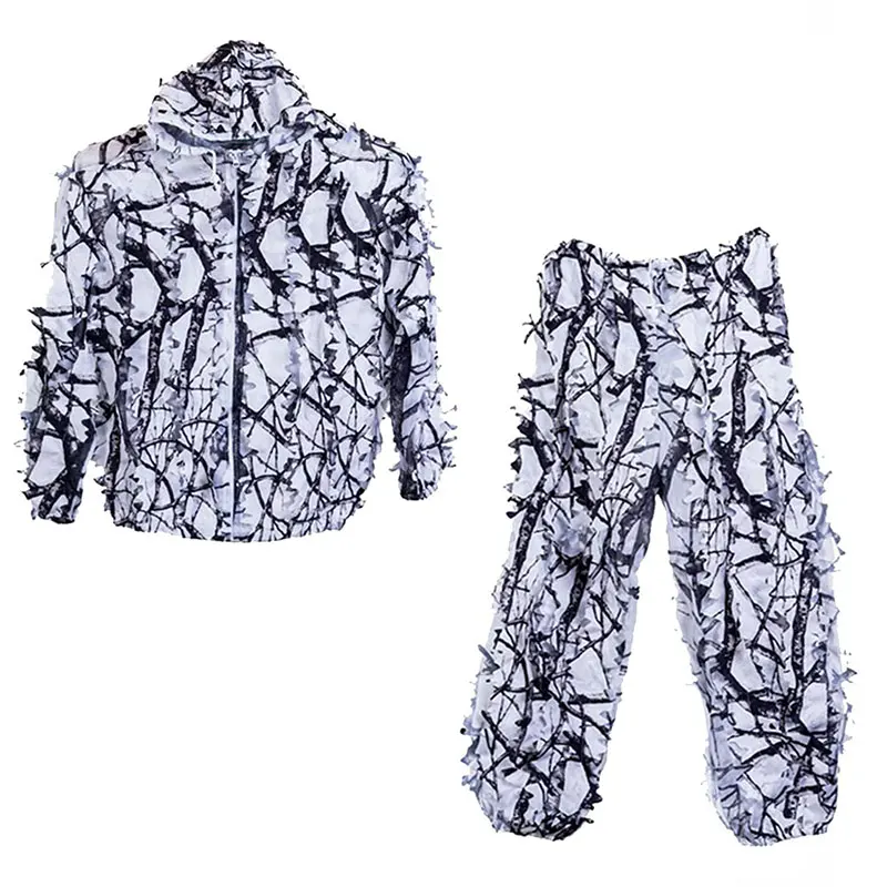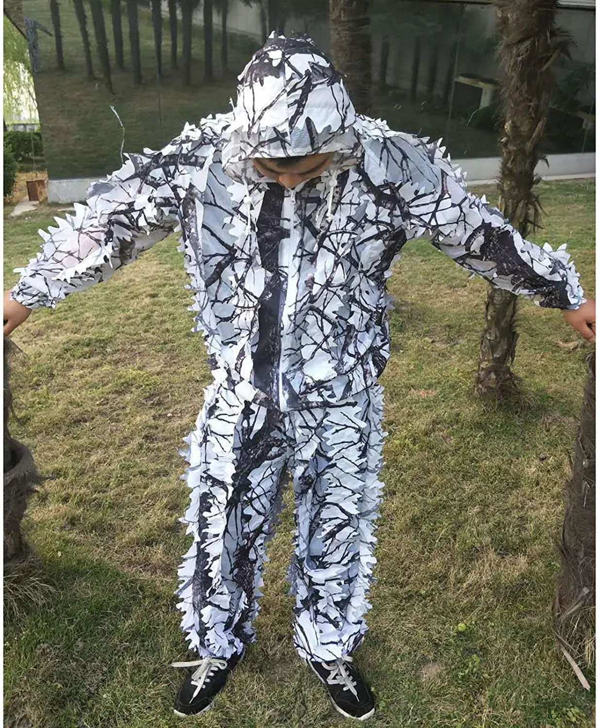 3D костюмы Ghillie из кленового листа, Зимний Белый снежный камуфляж с курткой на молнии, брюки, комплект одежды для охоты, стрельбы, наблюдения за птицами
