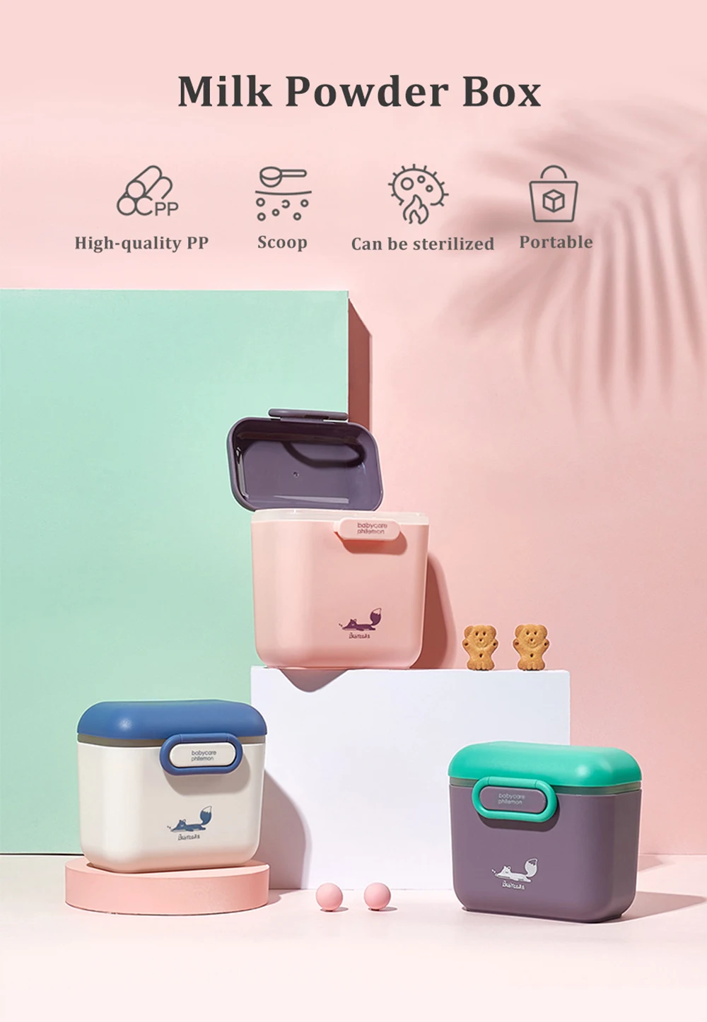 Преимущества коробки: высококачественный полипропилен, свободный совок, можно стерилизовать и переносить