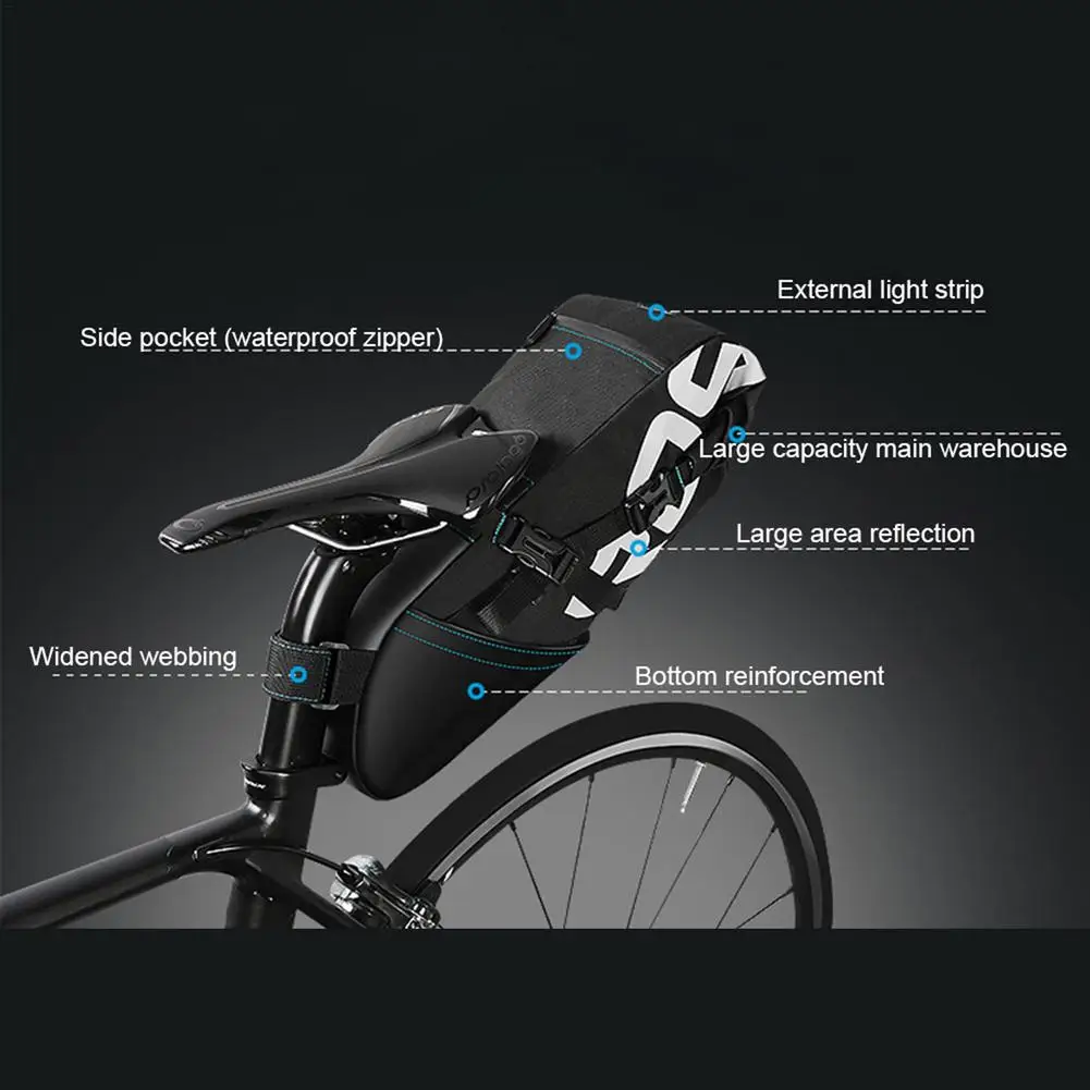 4. Светоотражающий дизайн: велосипедная сумка отражающая и крутая, что делает вашу поездку ночью более безопасной.