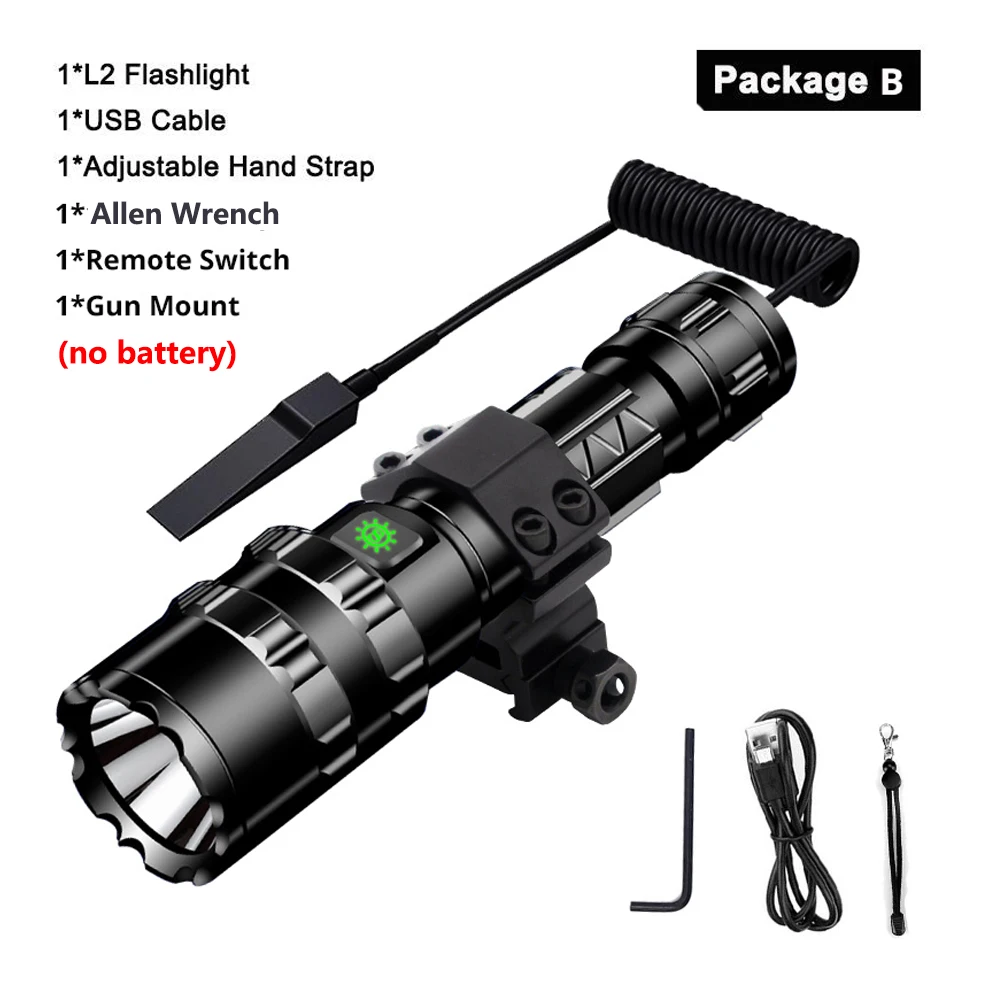 Тактический флэш-светильник ультра-яркий 1600 люмен USB Перезаряжаемый фонарь светильник страйкбол оружейный светильник для охоты на открытом воздухе кемпинга