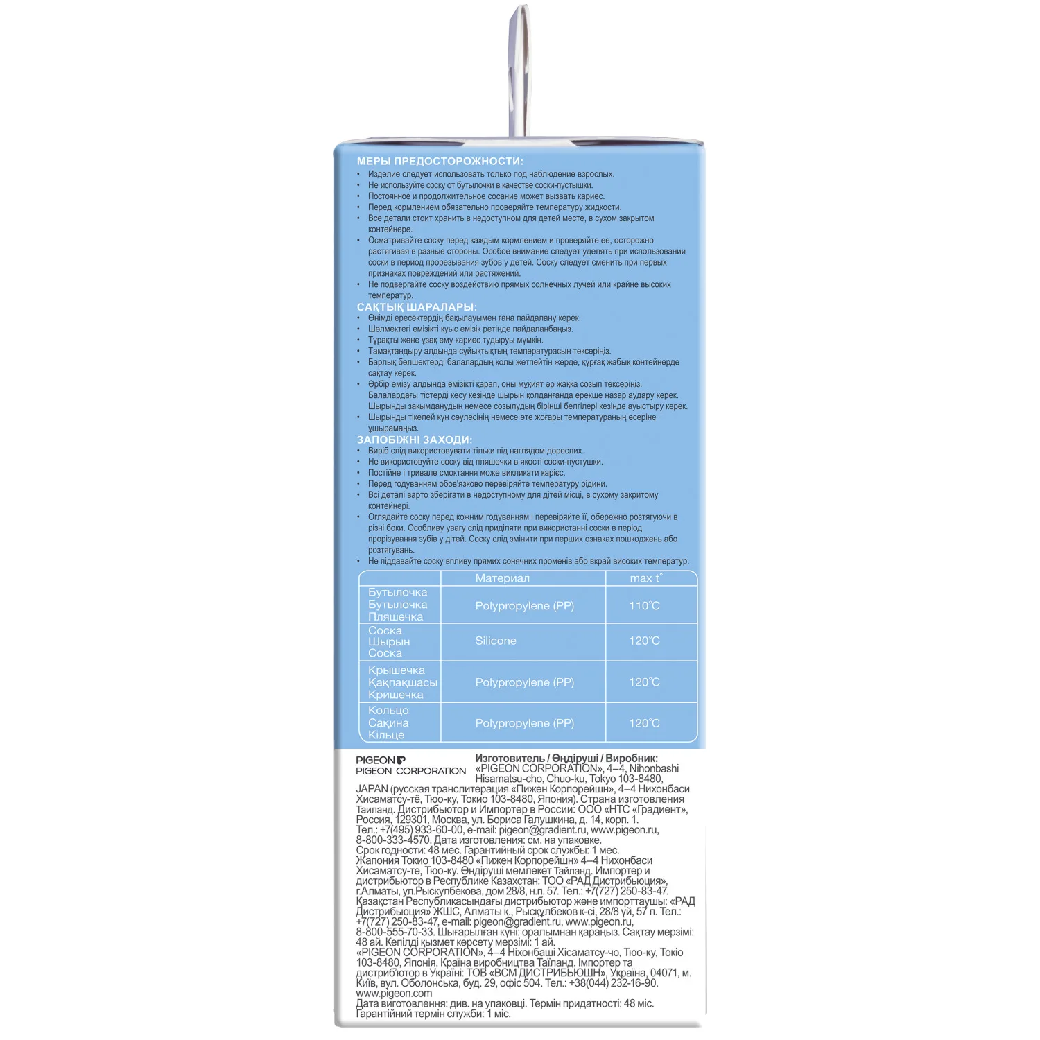 The nipple is made of very soft, elastic and dense silicone, the unique nipple design stimulates natural sucking. A matte textured surface contributes to a reliable grip of the nipple. The size of the nipple hole corresponds to the stage of child's development, complete with the nipple (size SS, 0-1 months). Patented ventilation system contributes to the uniform flow of milk. Reduces the risk of colic. It is not recommended to use the bottle as a substitute for the breast during the period of breast-feeding.