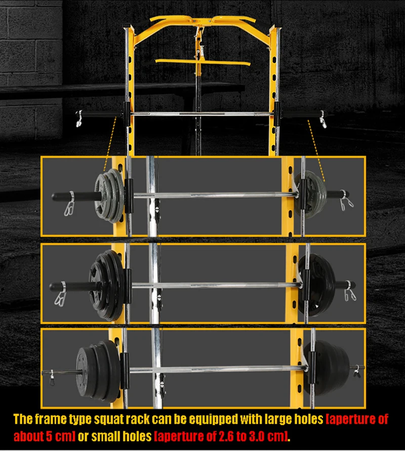 2) Тип рамы стойка для приседаний может быть оснащен крупными отверстиями [диафрагма составляет около 5 см] или с небольшими отверстиями [Диафрагма 2,6 до 3,0 см]. Вытяните черные резиновые рукава на обоих концах полюса, чтобы установить маленькие отверстия. Применимость шире, и использование более удобно.