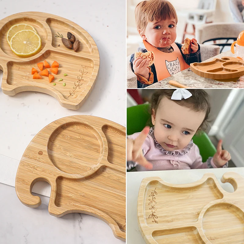 Тарелки для кормления детей, миска для еды, 1 комплект, Бамбуковая тарелка, столовая посуда, присоска для младенцев, слон, столовая тарелка, твердые блюда, обучение