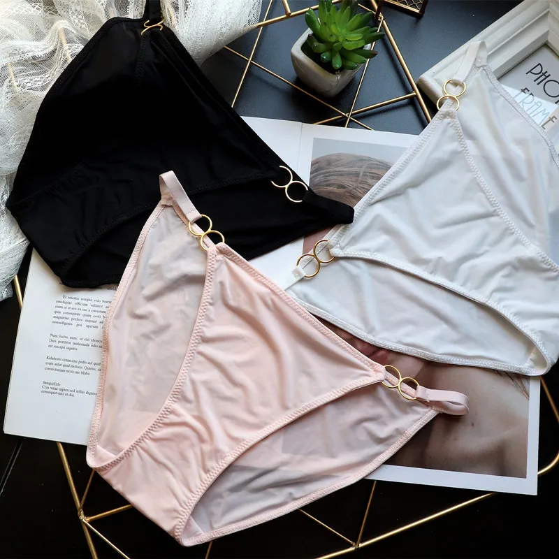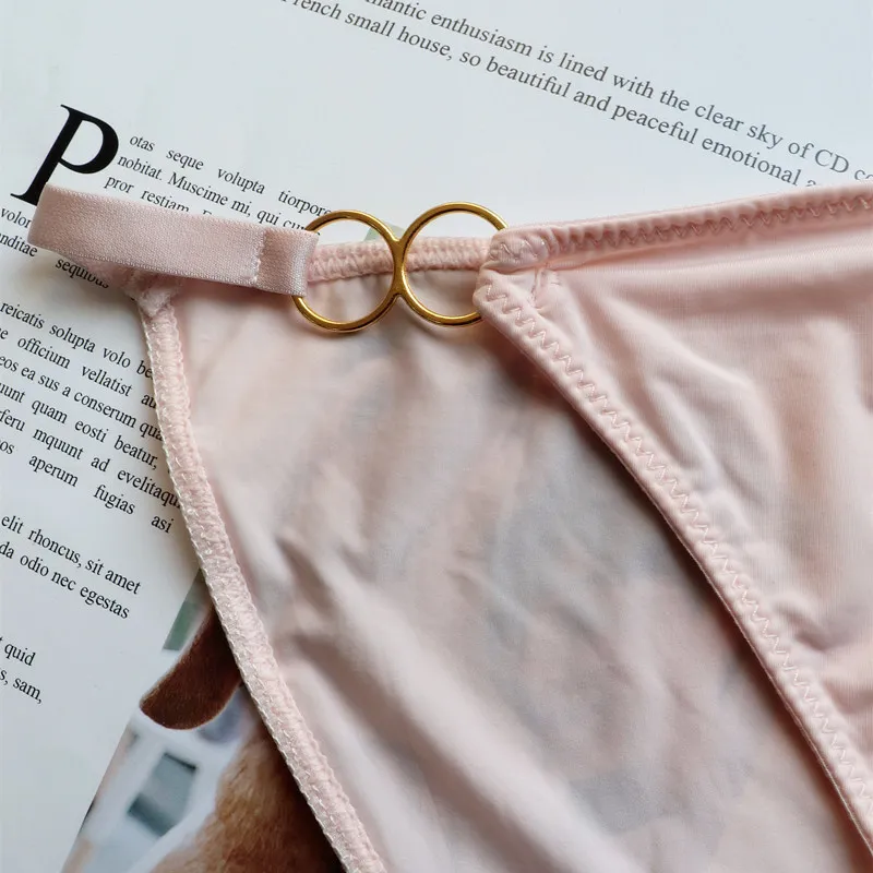 Сексуальные стринги, женское нижнее белье, одноцветные женские дышащие трусы с железным кольцом из ледяного шелка, нижнее белье
