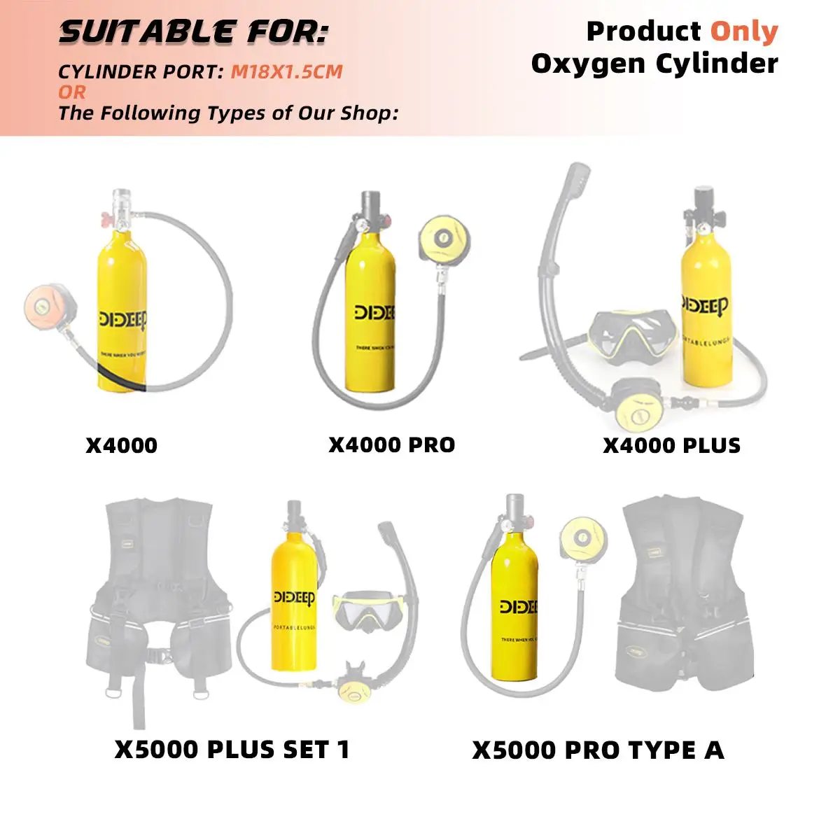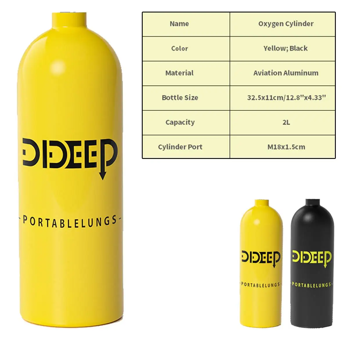 1. Кислородный баллон 2L позволяет ныряльщику оставаться на 1-10 метров под водой в течение 30-35 минут (в зависимости от индивидуальной емкости легких и глубины погружения), идеально подходит для начинающих.