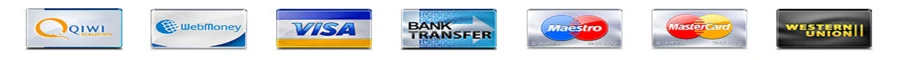 Мы принимаем оплату через Alipay, West Union, TT. Все основные кредитные карты принимаются через безопасный платежный процессор ESCROW.