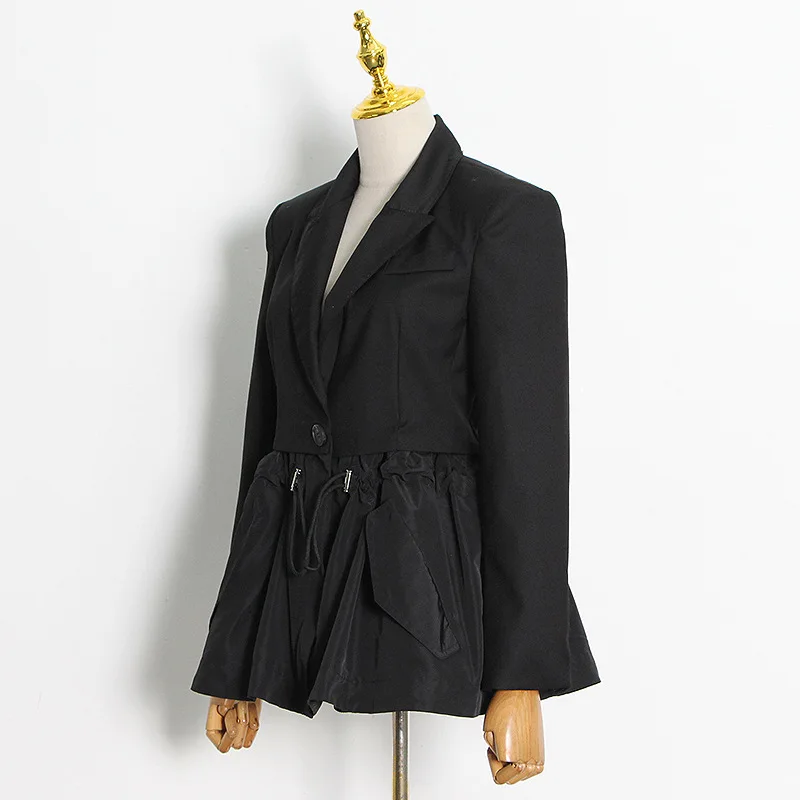 Осенний Новый офисный модный Женский блейзер с баской, шикарный черный блейзер с регулируемой талией и завязками