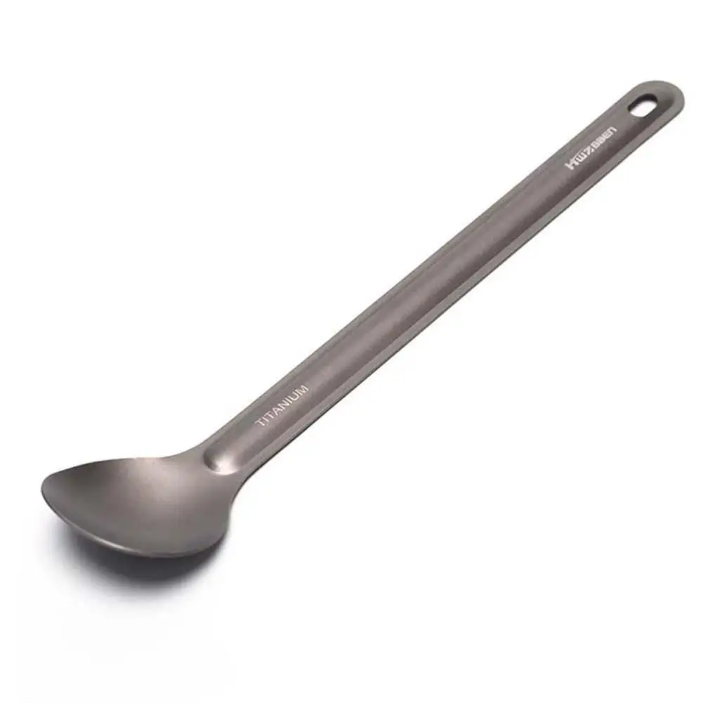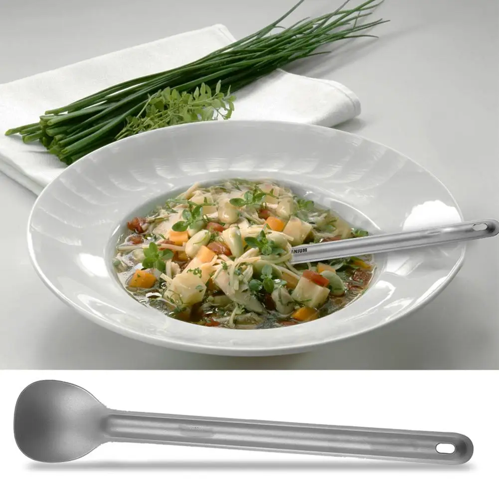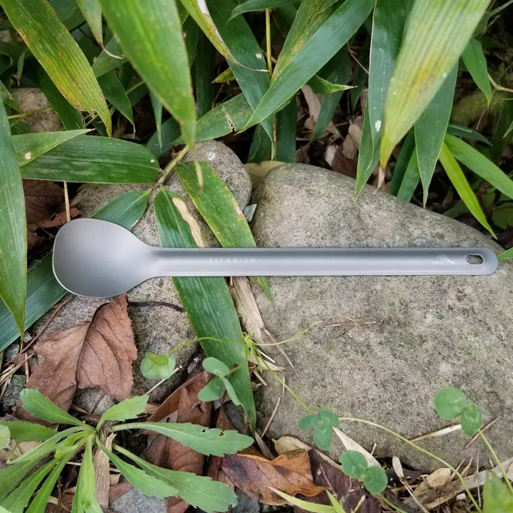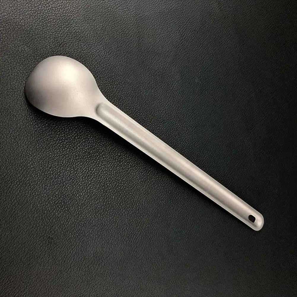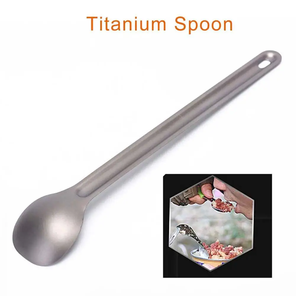 Ложка EDC с длинной прямой ручкой, легкая портативная устойчивая к коррозии посуда из чистого титана для путешествий на открытом воздухе, кемпинга, столовые приборы