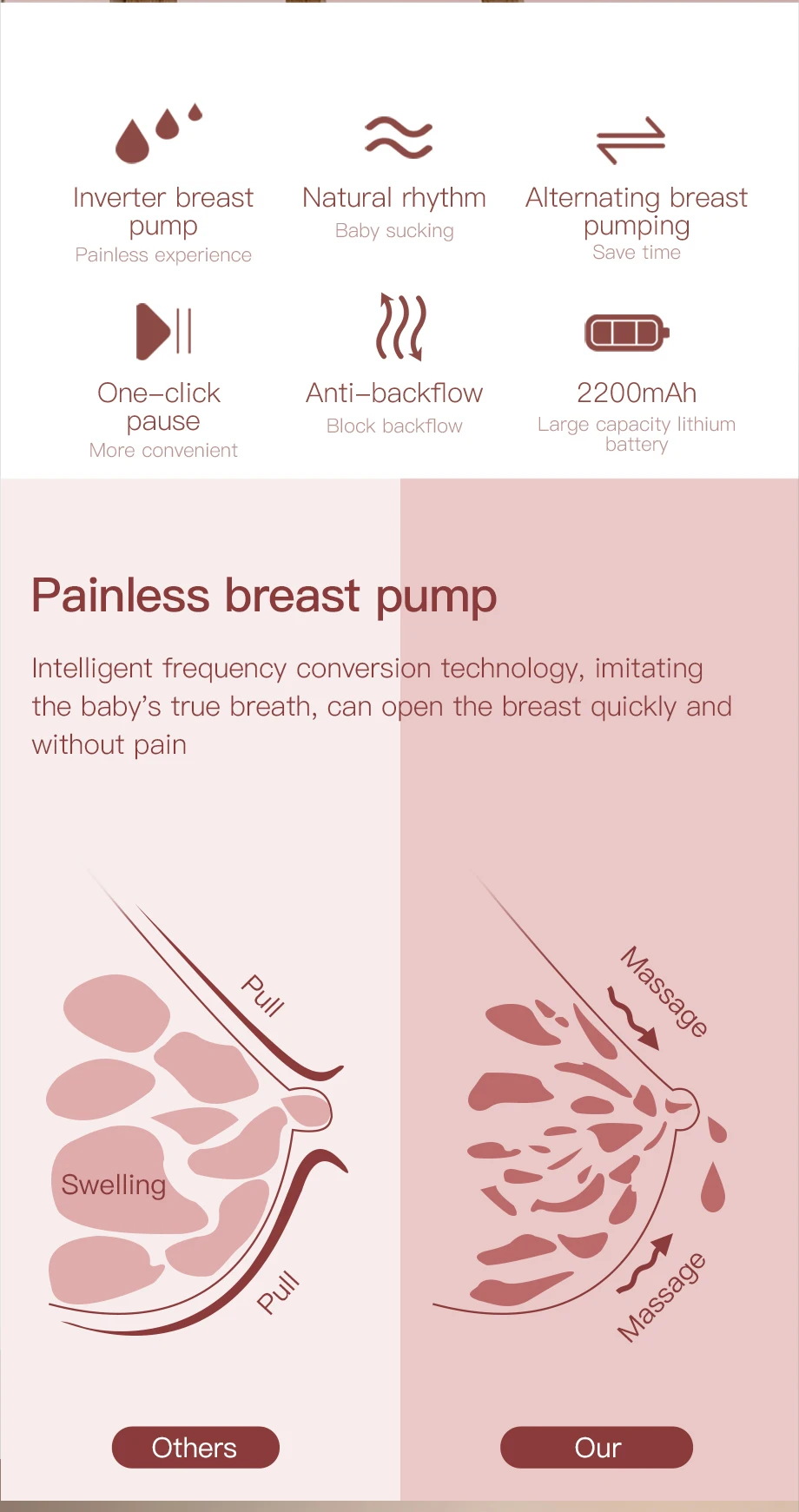 Умная Система: интеллектуальная Двухчастотная технология преобразования, реальное моделирование дыхательного ритма ребенка, быстро откройте молочную железу, помогите маме быстро и безболезненно открыть молоко