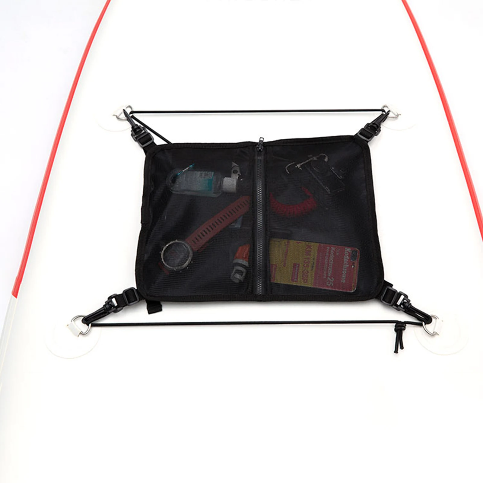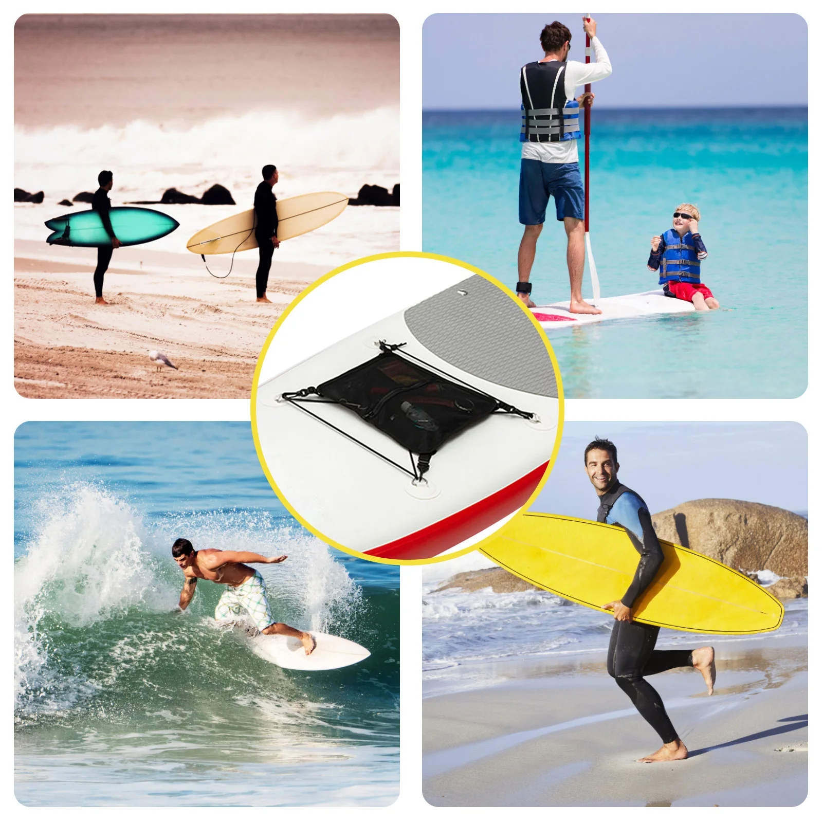 2. С 4 зажимами: посылка нейлоновой доски для серфинга сетчатый мешок для хранения включает в себя 4 зажима для фиксации сумки на верхней пластине доски для весла, чтобы обеспечить безопасную транспортировку.