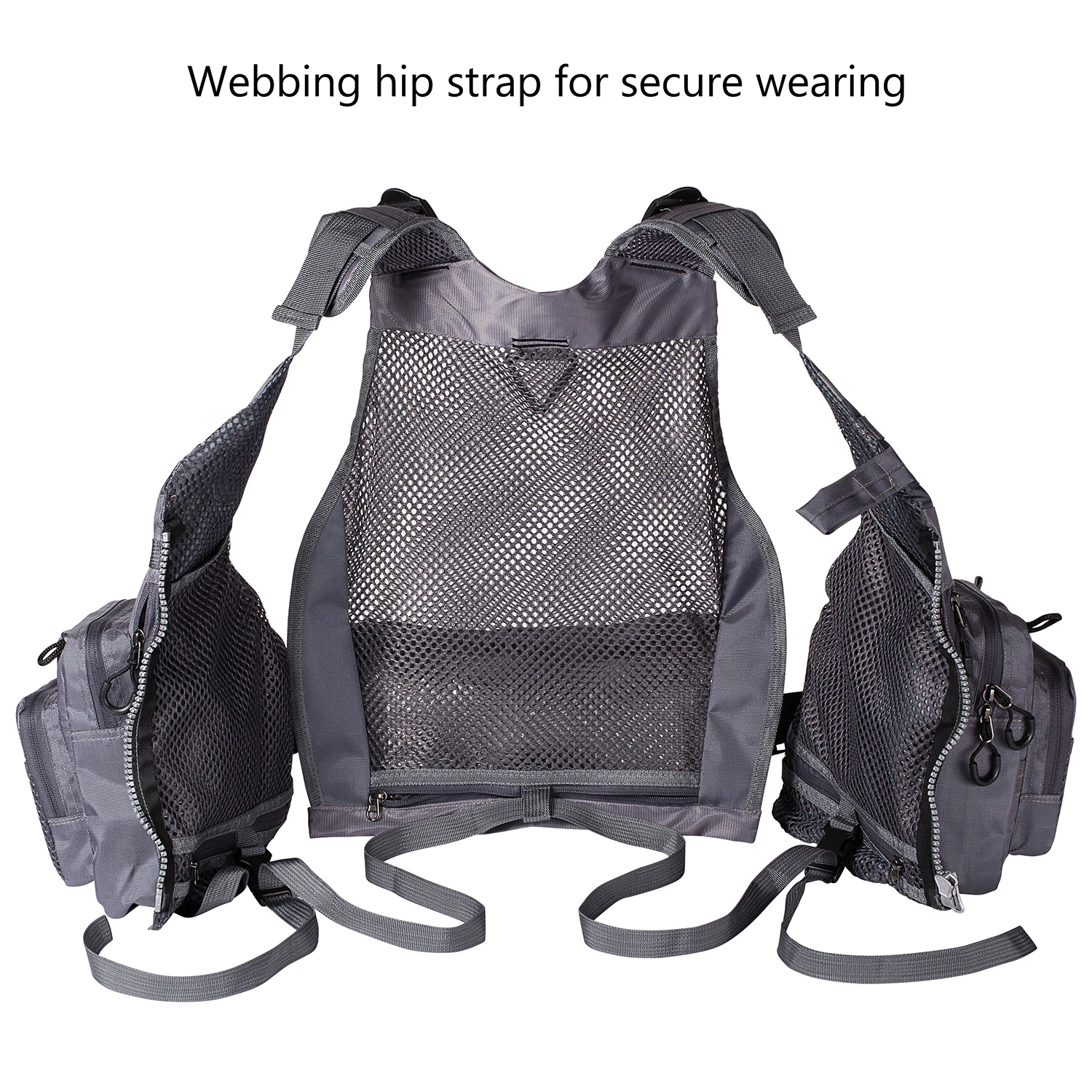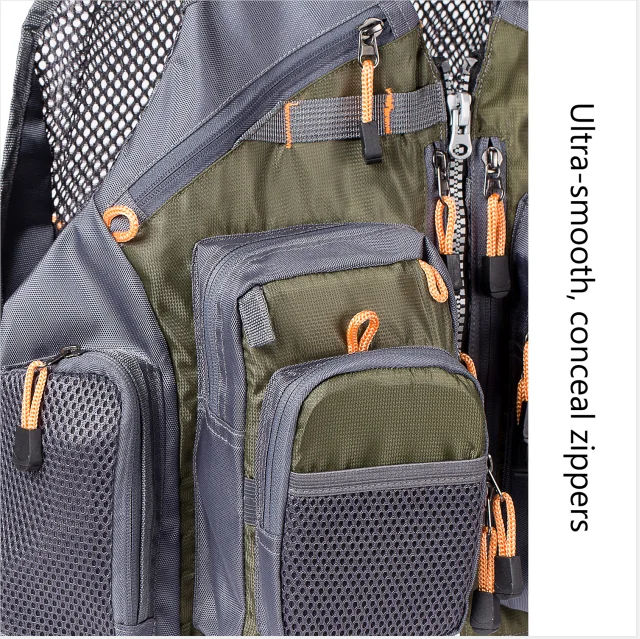 D-образное кольцо на спине для крепления рыболовной сети, Стробоскопическая петля держателя для использования в условиях низкий светильник, петли для держателя стержня, вкладка для ножей, И различные петли крепления позволяют носить все ваши шестерни.
