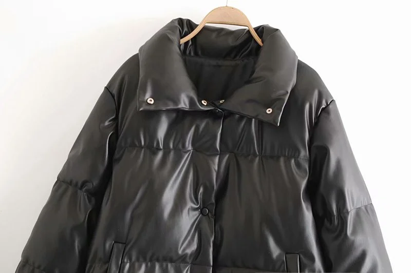 PUWD винтажные женские Куртки из искусственной кожи 2021 Зимние Модные женские толстые парки с отложным воротником и карманами Женская шикарная верхняя одежда