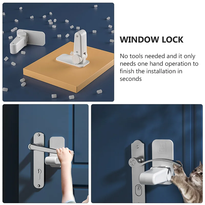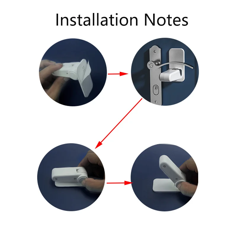 Описание: Не допускайте попадания в дверь младенцев или домашних животных. Взрослые могут открыть дверь, как только они будут установлены. Укрепляет защиту детей. Он принимает 3 м пасты, который является прочным и не повреждает мебель. Подходит для дверных ручек, печей и дверей шкафа.