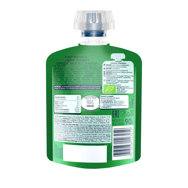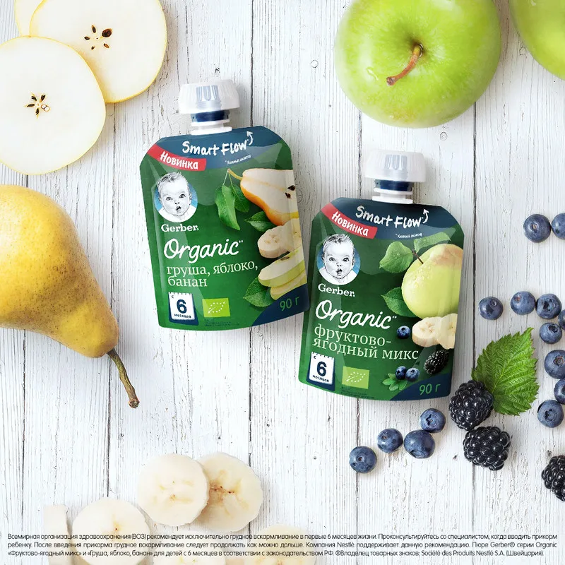 Почему упаковка puree Gerber Organic pear, apple, banana так нравится детям и их родителям?