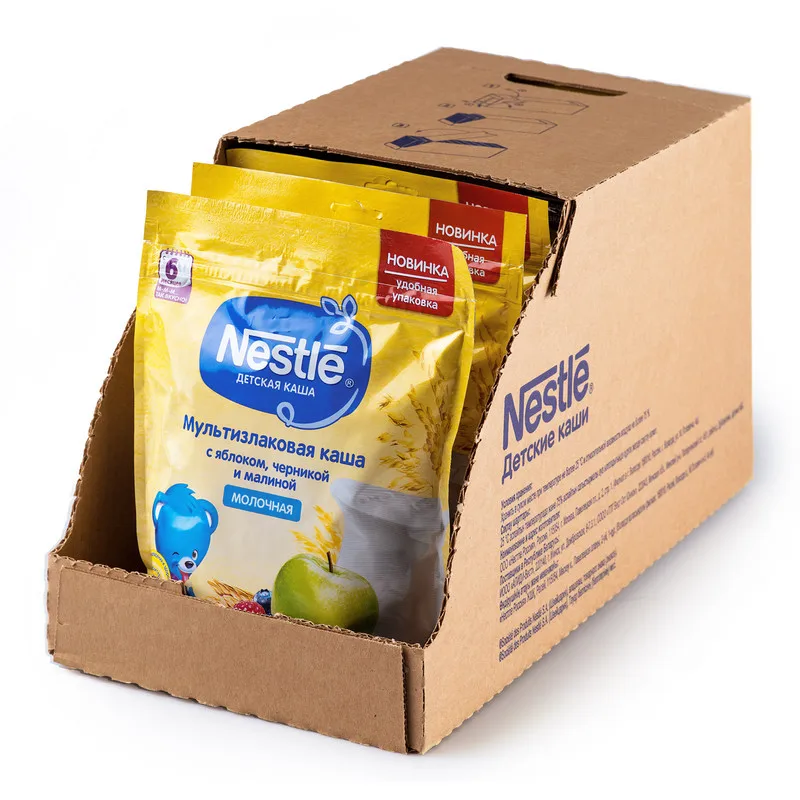 Каша Нестле молоко мультфильм с яблоком, чернилами и малиной от 6 месяцев 220 г с bifidobacters BL
