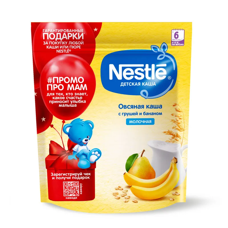Каша Nestlé Молочная овсяная с грушей и бананом с 6 мес 220г с бифидобактериями BL