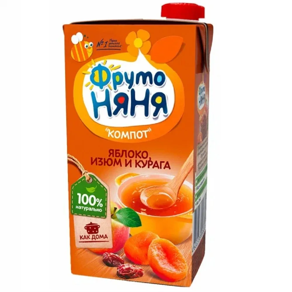 Компот ФрутоНяня яблоко, экстракт изюма, курага с 3-х лет, 0,5 л