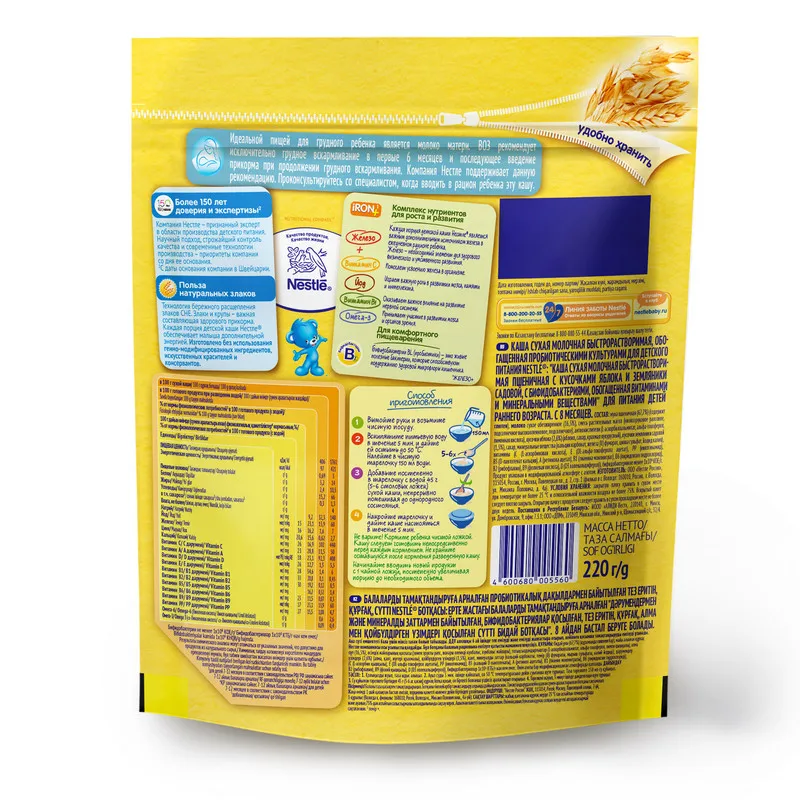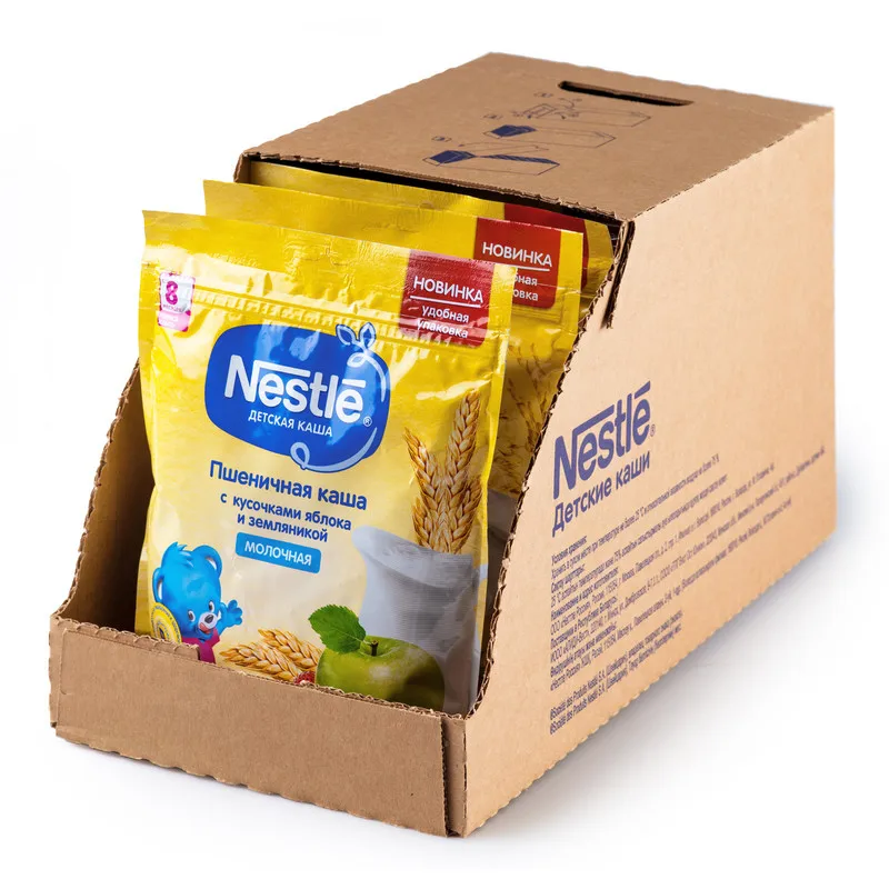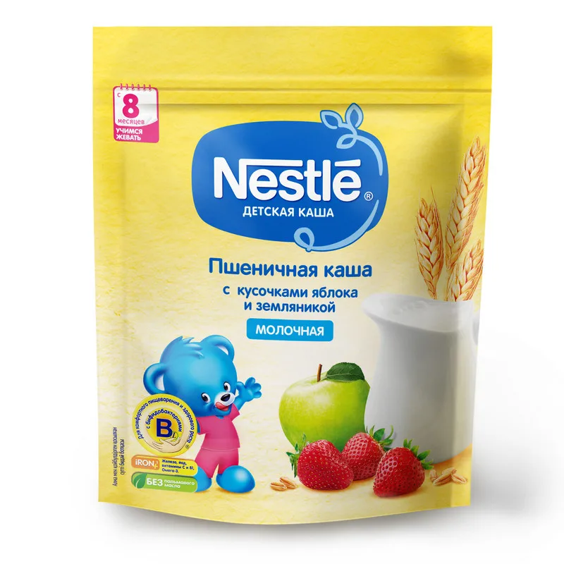 Каша Nestlé Молочная пшеничная с кусочками яблока и земляникой с 8 меcяцев 220г с бифидобактериями BL