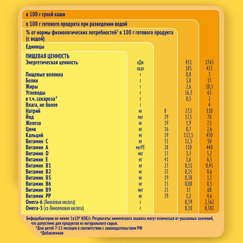 Каша приготовлена с использованием особой технологии бережного расщепления злаков CHE. Благодаря этому в продукте появляется естественный сладкий вкус, каша лучше усваивается и имеет повышенную пищевую ценность. Каша является полезным сбалансированным прикормом для здоровых детей и отлично подходит для расширения рациона.Обогащена пробиотиками - живыми бифидобактериями BL. Они способствуют нормализации пищеварения, росту здоровой микрофлоры и укреплению иммунитета, что очень важно в период введения прикорма. Каша содержит комплекс витаминов и минеральных веществ iRON+ для здорового роста и развития. Добавление фруктовых кусочков (яблоко и земляника) способствует развитию как вкусовых восприятий малыша, так и жевательных навыков, что очень важно в период постепенного перехода к взрослому меню.