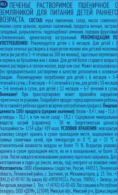 ФрутоНяНя - печенье растворимое пшеничное с земляникой 6 мес., 50