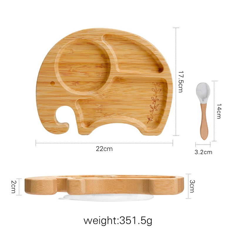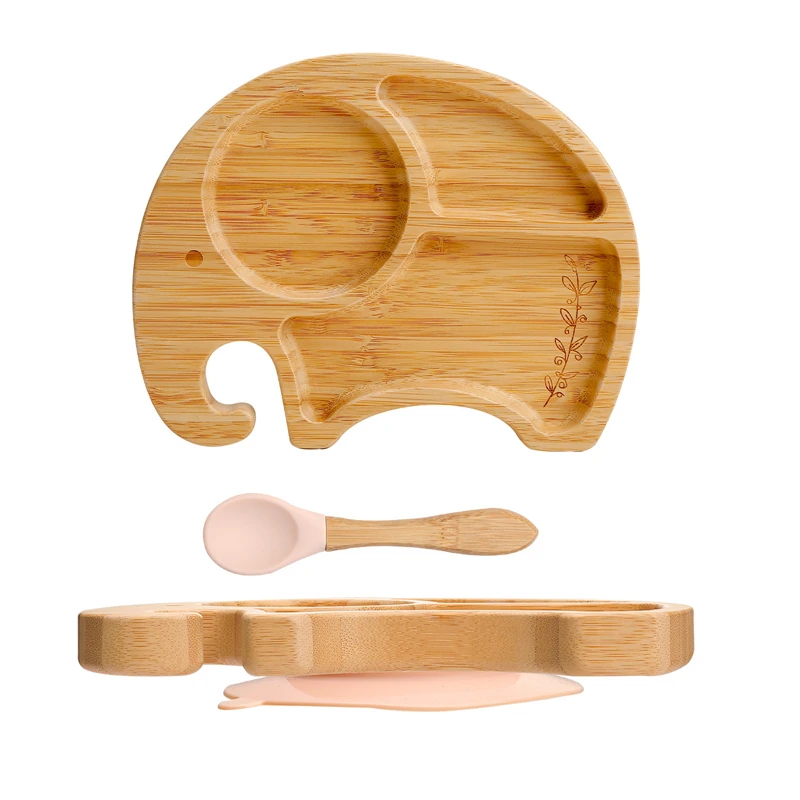 3 шт./компл. Набор тарелок для кормления из бамбука в форме слона, противоскользящая посуда для детей, подарок на день рождения
