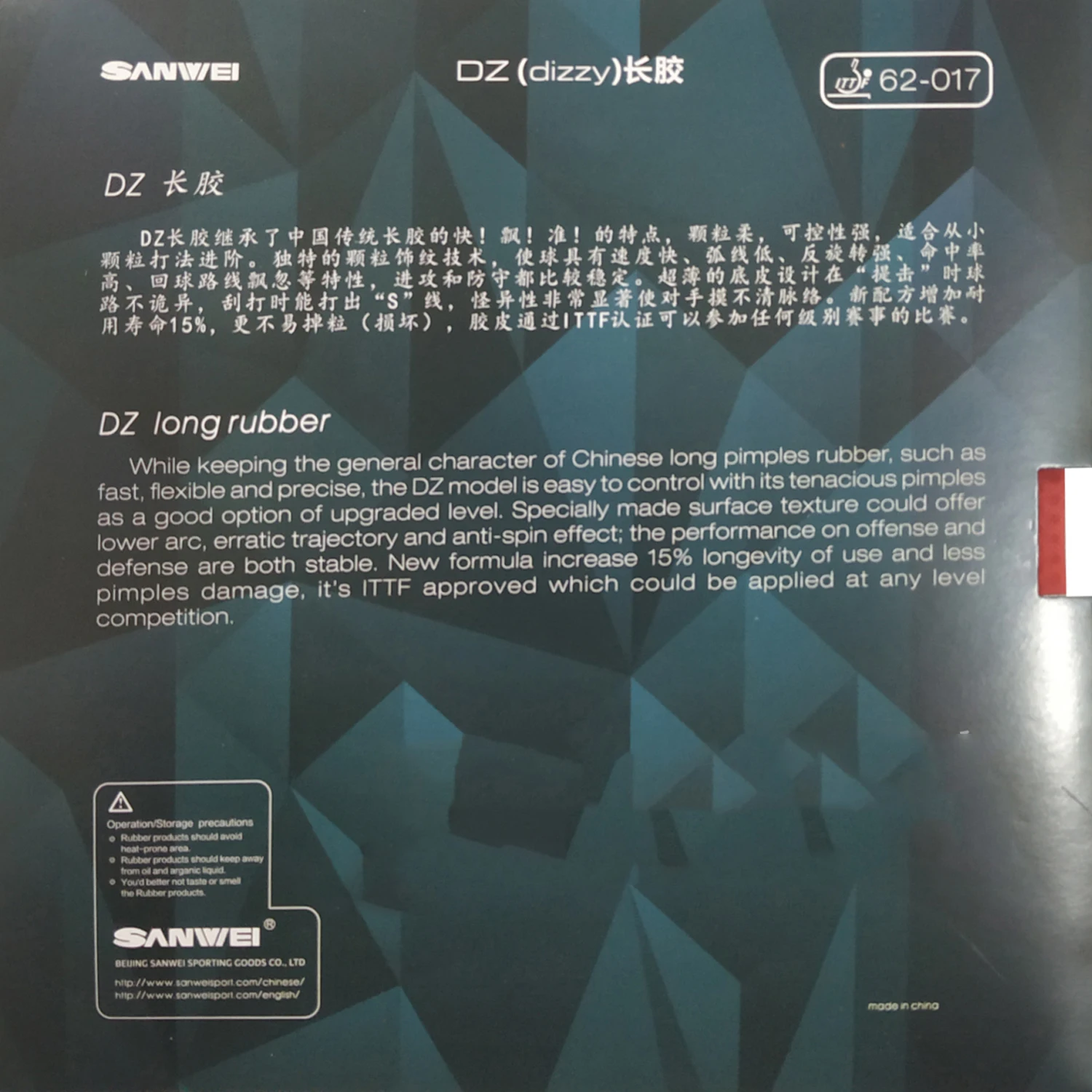 -SANWEI DZ (DIZZY), последний pips-long rubber, первый выпуск на китайском PingPong (pingpong.Aliexpress.com).
