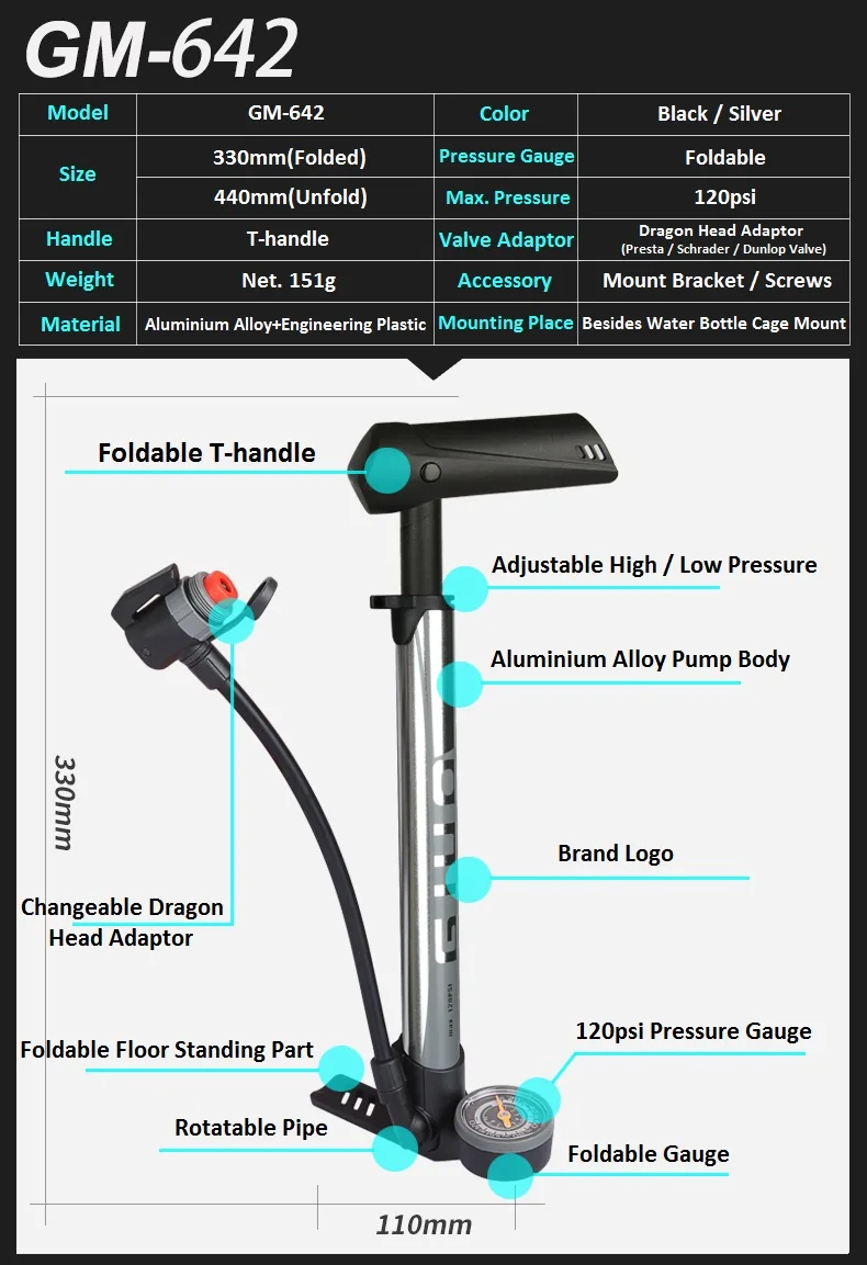 Giyo 120psi напольный и ручной 2 в 1 велосипедный насос Presta Schrader AV/FV 2 в 1 клапан MTB велосипед мини портативный Накачка шин
