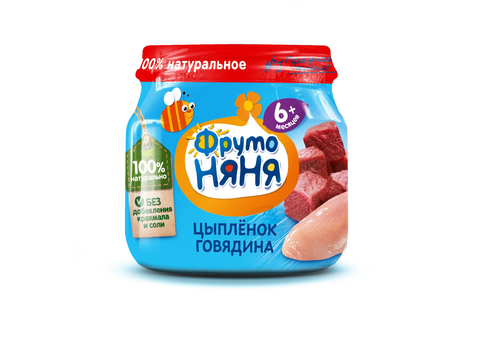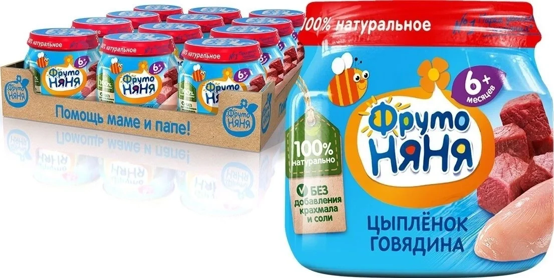 Fruit puree made of chicken meat with beef for feeding children of early age, 6 months. 80/12