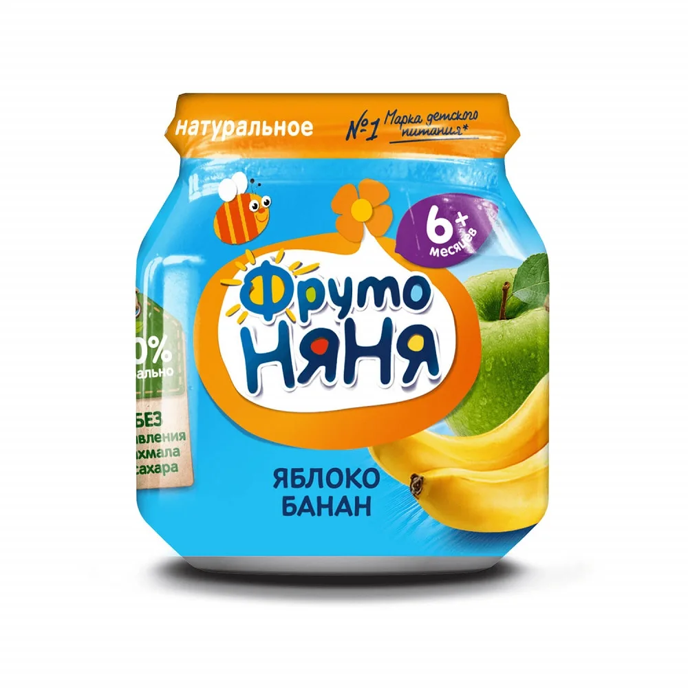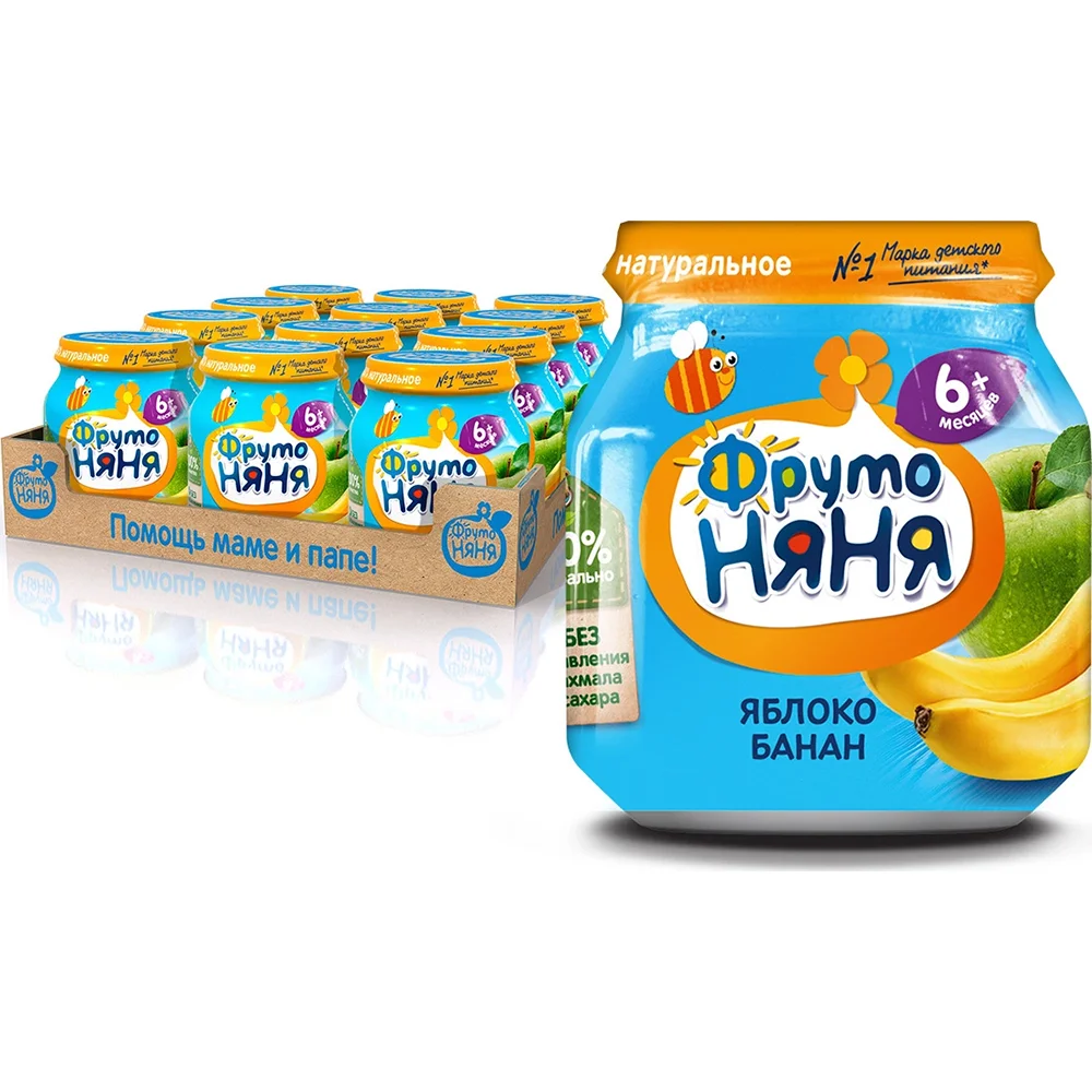 Пюре ФрутоНяня яблоко, банан с 6 мес., 100г*12 шт.