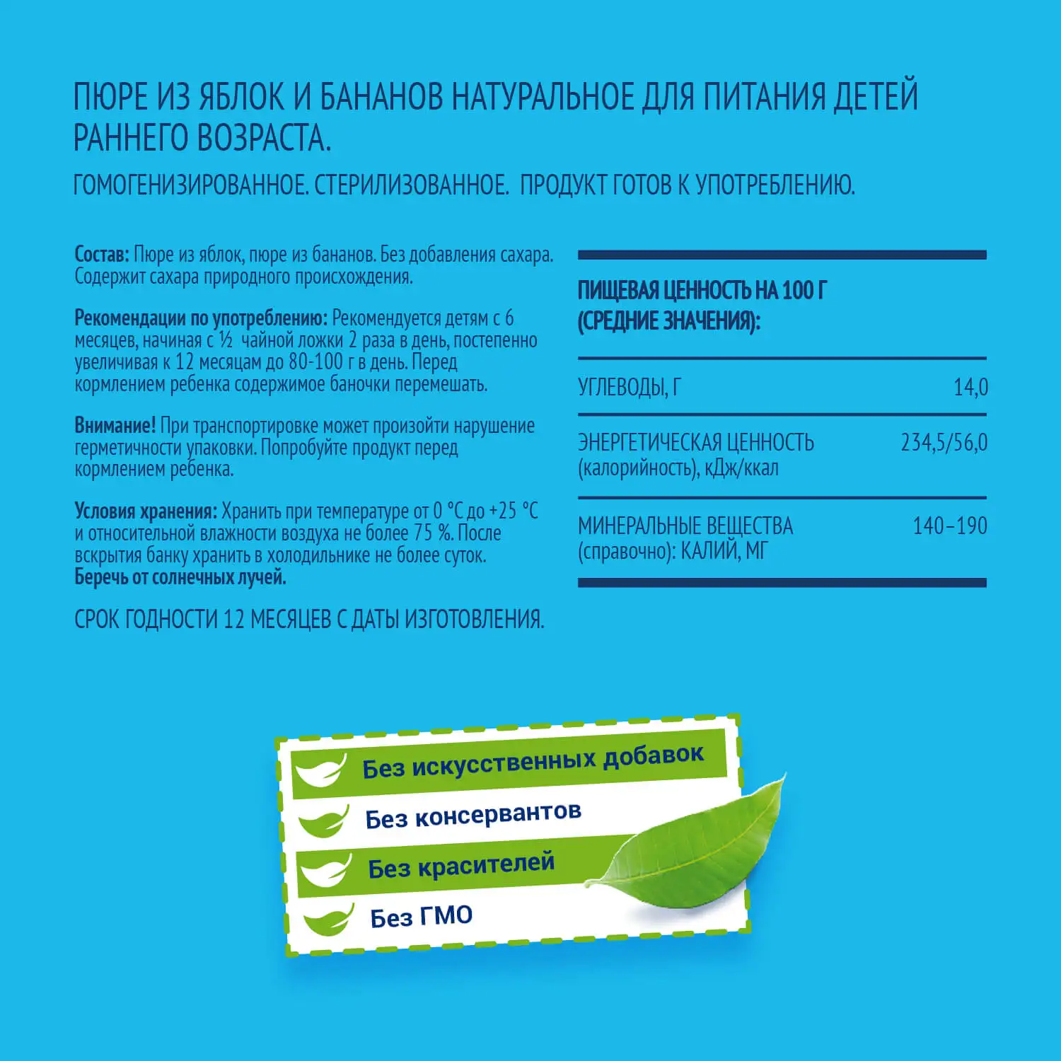 Пюре из яблок и бананов «frutonian» подходит для питания детей раннего возраста.