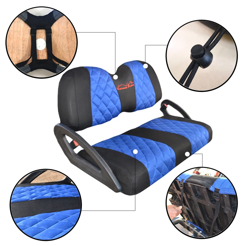 5. Легко для самостоятельной работы:Очень легко установить, как перчатка. Нет необходимости снимать сиденье или заднюю часть или подлокотники на сиденье. Крышка не мешает металлическим петлям, которые удерживают сиденье на месте. Плотно прилегает к внешнему краю с завязками, которые можно затянуть и двумя ремешками, которые бегут по центру. Отлично смотрится и легко устанавливается. В дополнение к клубным автомобилям Yamaha golf carts, он также подходит для Excar, Lvtong, Eagle, Marshell carts. До тех пор, пока Заводские стандартные сиденья для гольф-карт могут быть установлены (за исключением специальных индивидуальных версий). Не только тележка для гольфа может быть установлена до тех пор, пока Размер/форма сиденья аналогична сиденье тележки для гольфа.