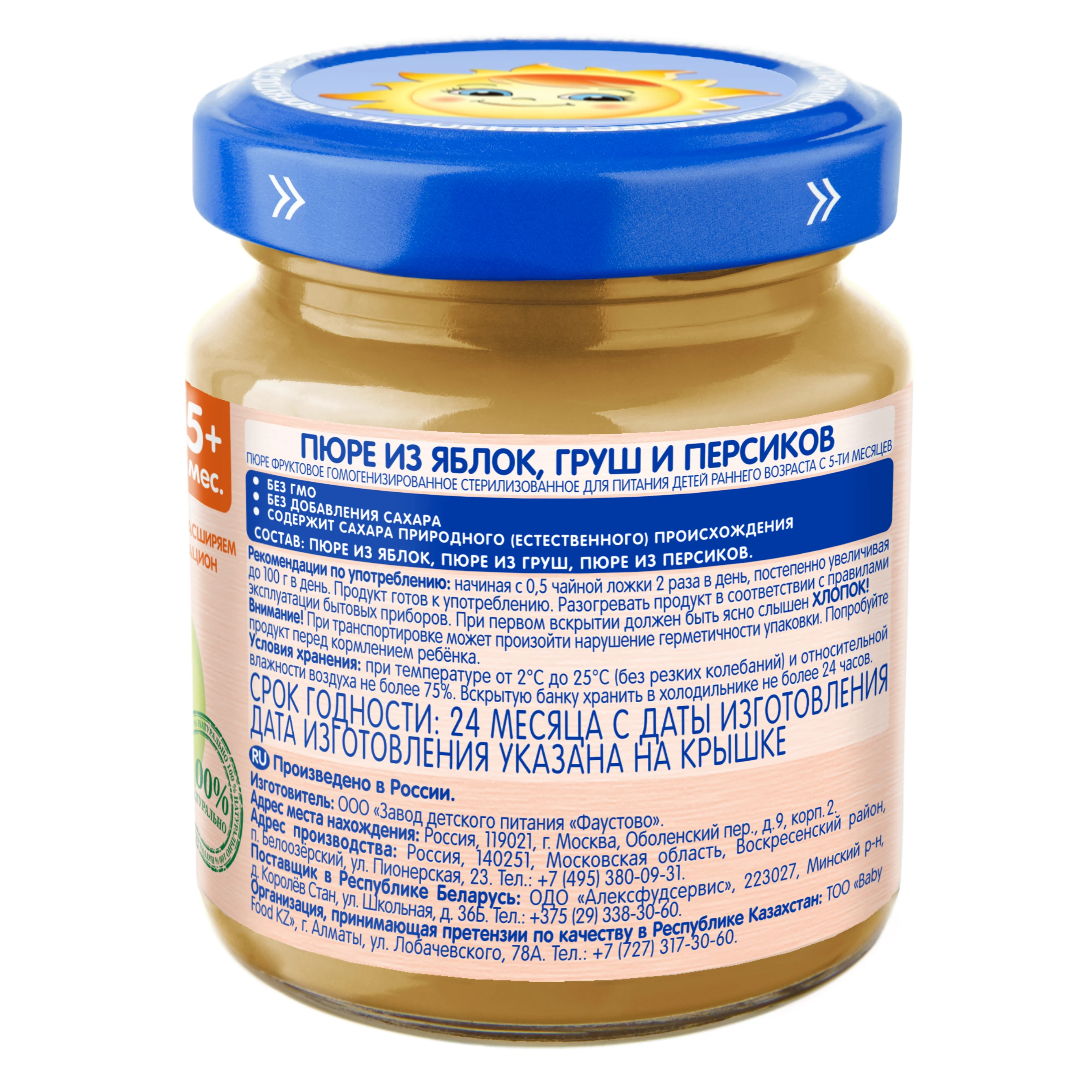 Новая бабушка лукошко-пюре яблоко, Груша и персик 5 месяцев, 100/6