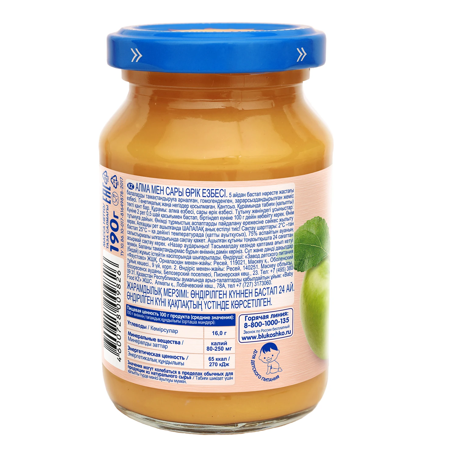Puree from apples and apricot, from 5 months, 190g. The product includes apple puree, apricot puree, without GMO. Without adding sugar.