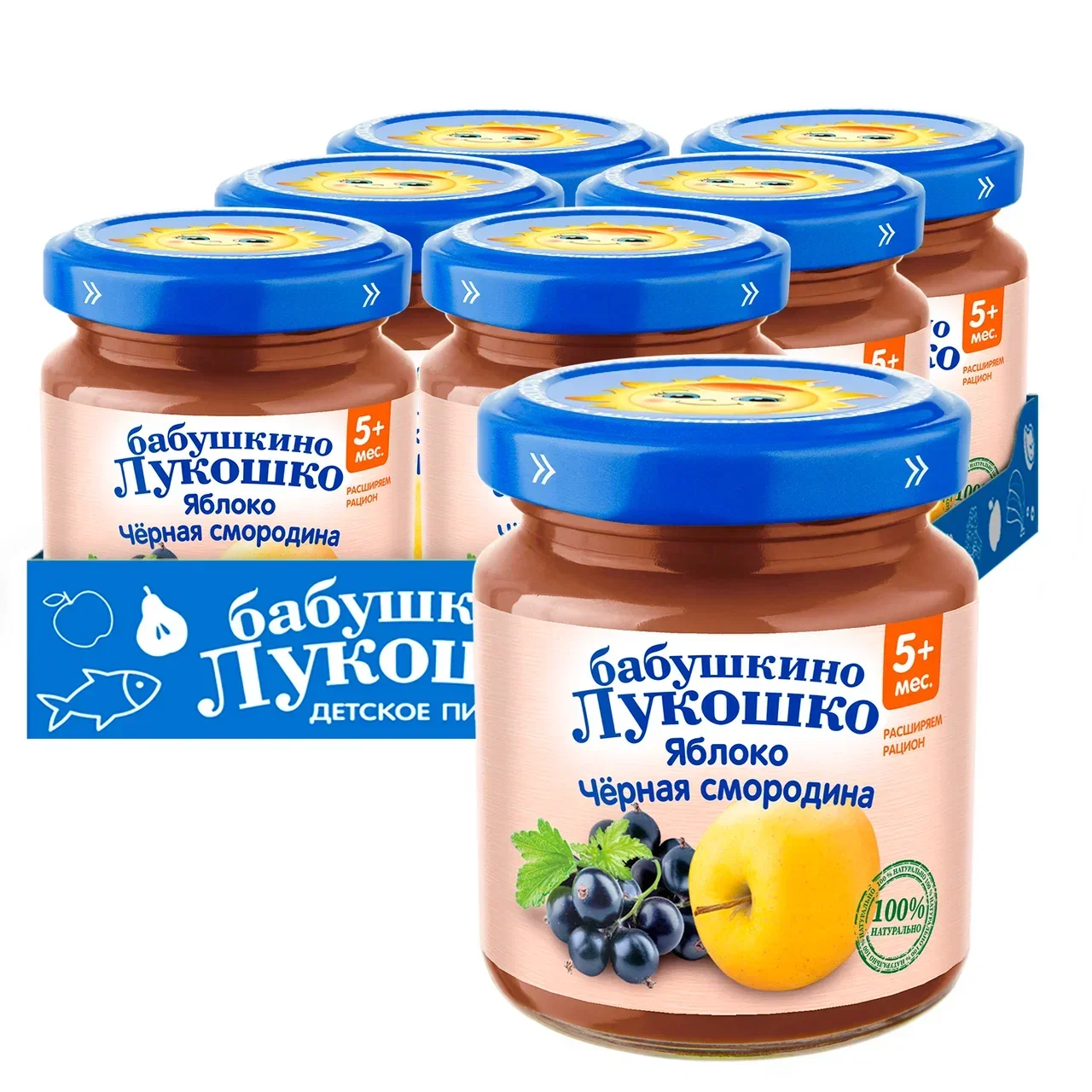 Бабушкино Лукошко - пюре яблоко, чёрная смородина, 5 мес., 6шт по 100г