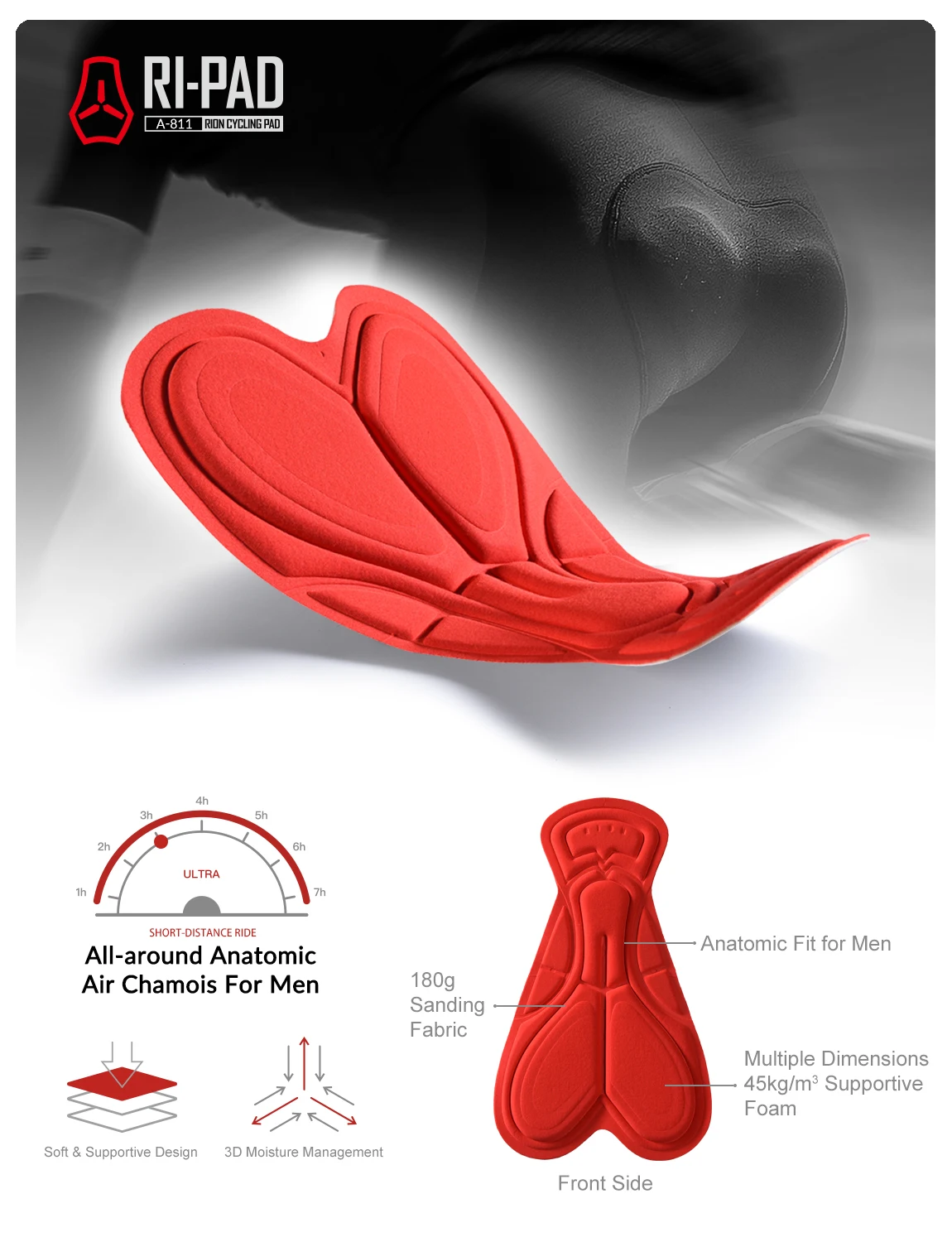 Мужская универсальная анатомическая воздушная замша RION A-811 обеспечивает комфорт, поддержку и увлажнение от 2 плотностей и 3 различных толщины перфорированной пены с более мягкой подкладкой.