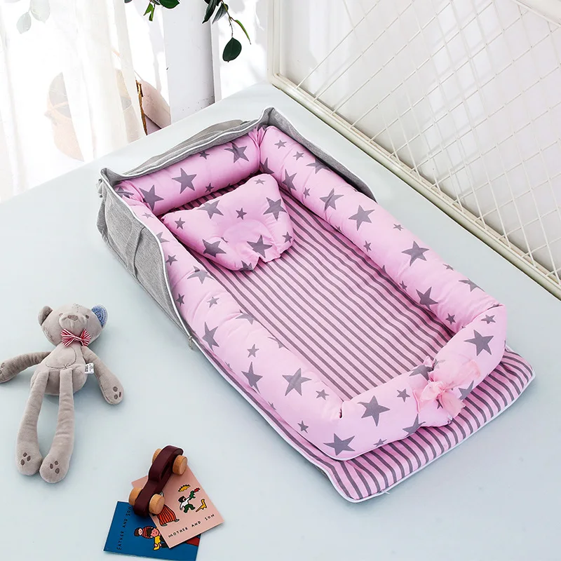 Портативная детская кроватка-гнездо, съемная моющаяся Защитная Подушка, дорожная кровать для младенцев, хлопковая Колыбель для новорожденных