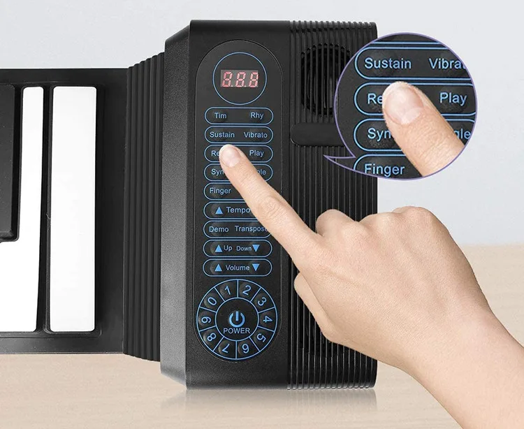 Этот рояль изготовлен из высококачественной силиконовой клавиатуры, нетоксичный, износостойкий, мягкий и прочный.