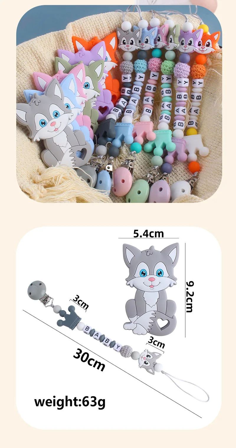 Силиконовые зажимы для пустышки civet cat, цепочка с держателем ручной работы, персонализированные именные Детские Прорезыватели, силиконовые соски с цепочками, набор